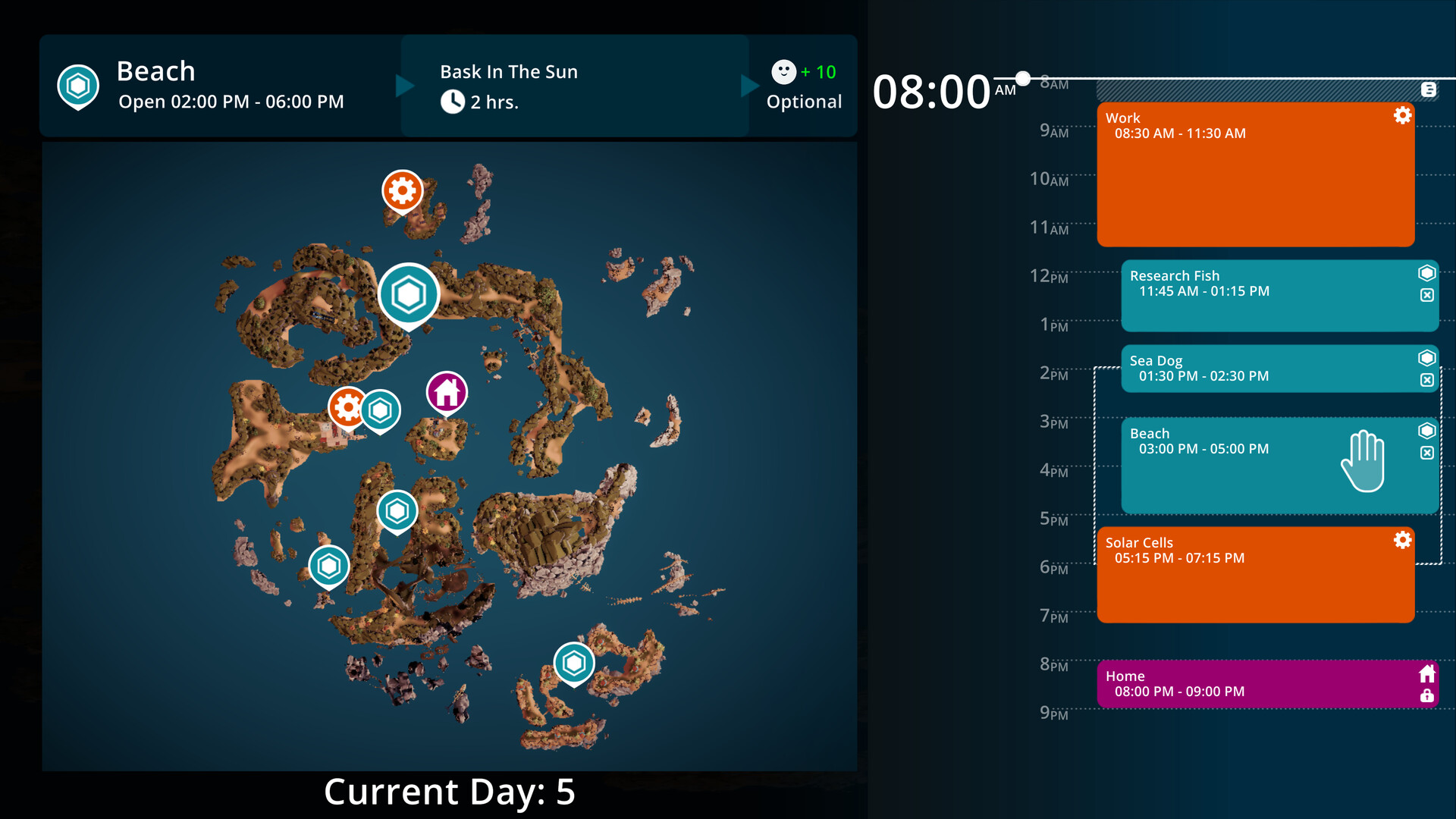 Plan your days to maximize your impact—choose when and where to lend a hand as you balance the needs of the islanders. Earn renown for your helpful deeds, but timing is everything. Can you navigate optimally, arrive on time, and help everyone in need? Your scheduling skills are the key to success!