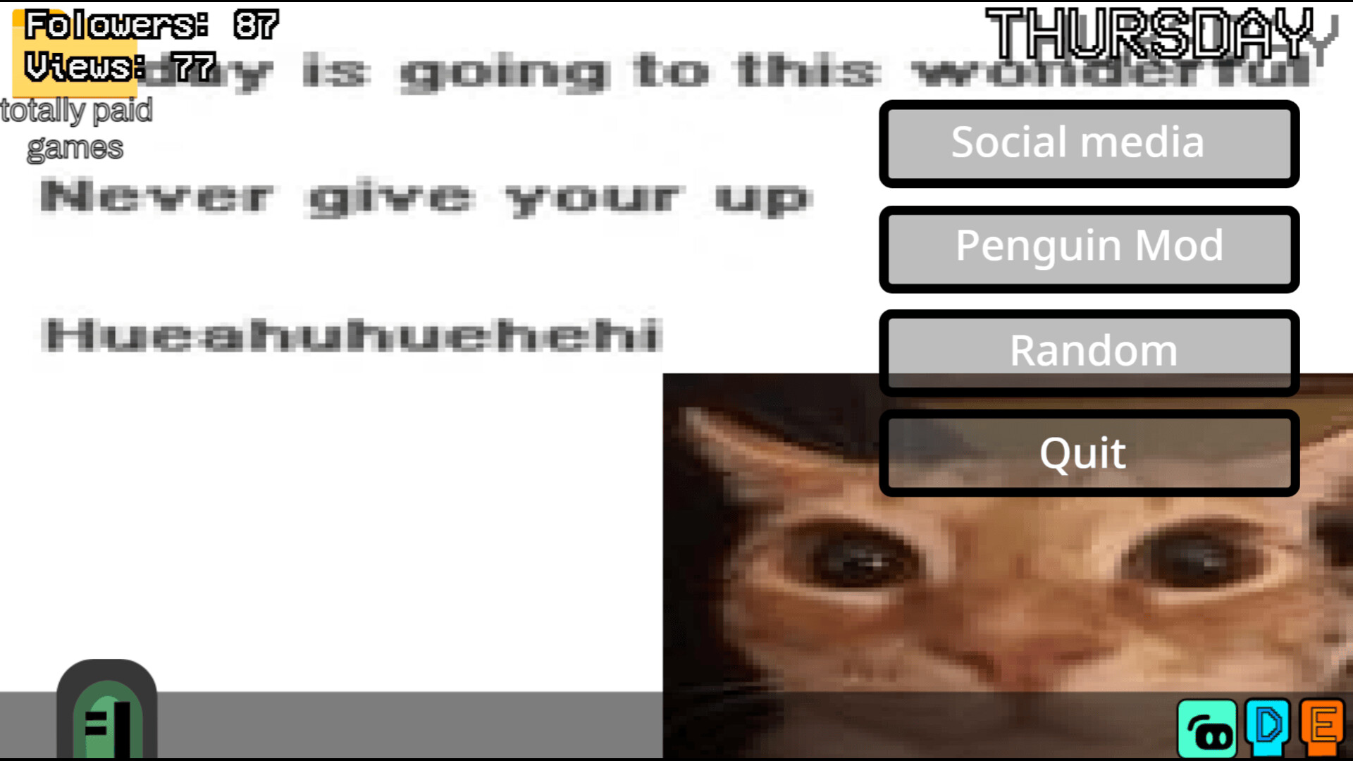Gokai Awesome Simulator + is a premium version of Gokai Awesome Simulator (now known as Gokai Awesome Simulator Lite) with tons of new content than the original! Originaly made by just Gokai on 2024, 05, 11, Gokai awsome simulator is a streamer/ game dev simulator where you can be a dude named Gokai doing awesome things in a simulator. This game is inspired by Bob-fnf simulator on scratch, You are Gokai, A dumbass with a computer and a dream, you can code*, stream*, set strangers into your home** and much more!! Find all the endings and be the most popular game developer/streamer ever!!!