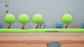 2d platformer where you play with robot character. Finish levels and end of level there are trophy. Beware several deadlious enemies like Flower,Slime, Bee etc. Also dangerous traps like spikes. Falling out of map will kill also player. There is also moving platforms and jumping platforms. 12 Levels with level unlock system