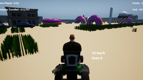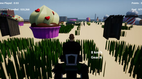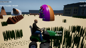 Lawnmower game series is back with this new version. Player drive original lawnmower vehicle at this strange food place which is full of different food objects like donuts, marsmallow, hotdog, ribs, chocolate etc. Player mission is just hang and cut grass in this small open driving simulation game. There is fuel consumption and player need also collect fuel cans to get more fuel. If fuel goes to 0, game is over. Game contains also weather system.