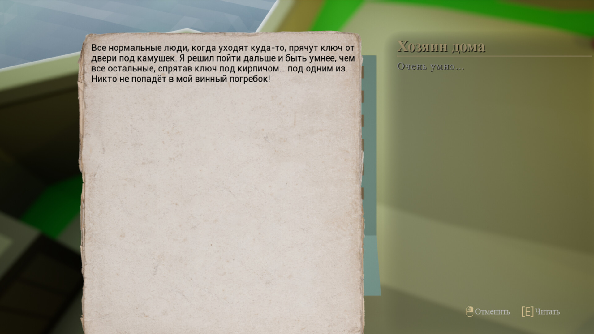 Повествование через окружение и записки.