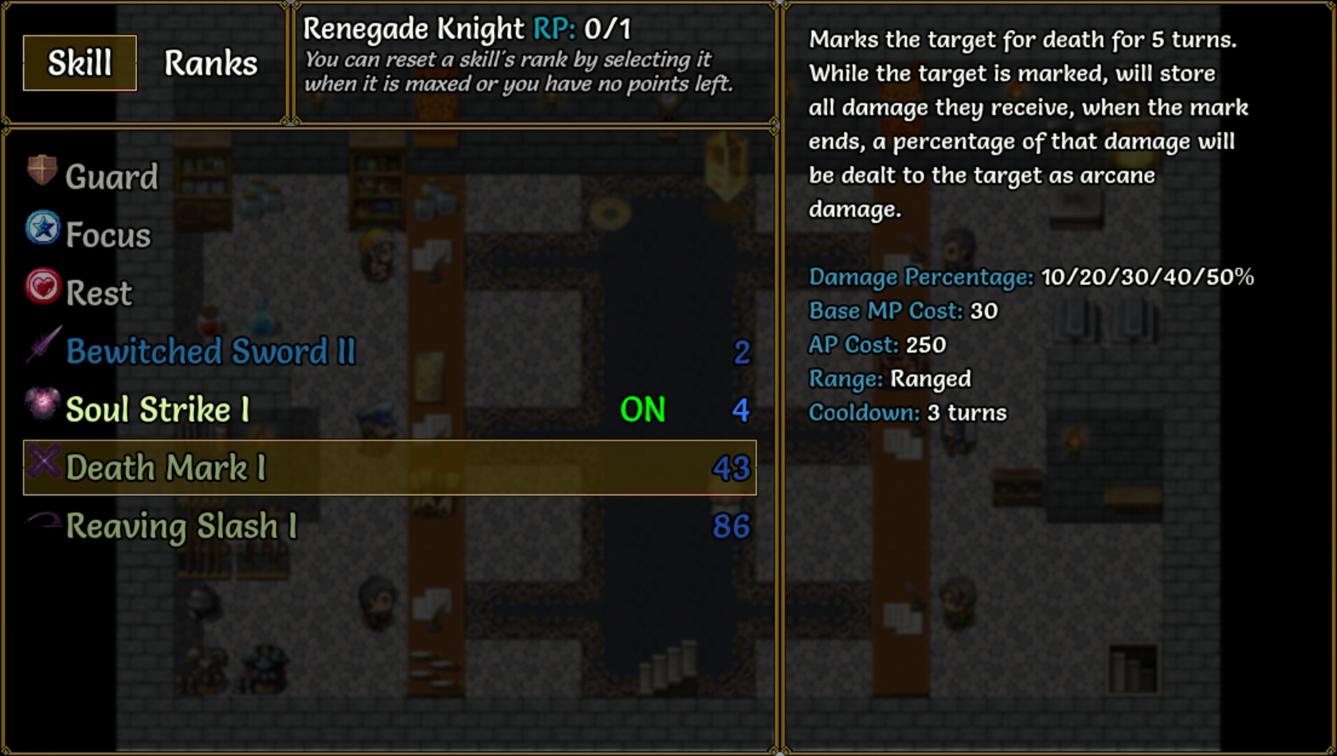 Метка смерти: Мечтает о смерти врага, вызывая урон после 5 ходов.