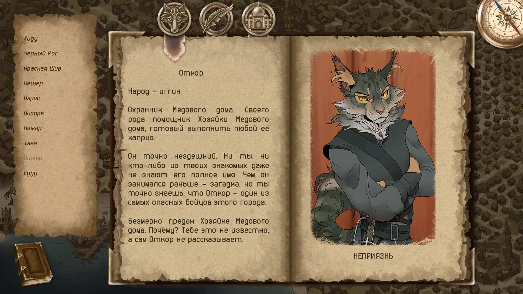 Фэнтезийная интерактивная история про зверолюда Хиду, расследующего убийства в портовом городе.