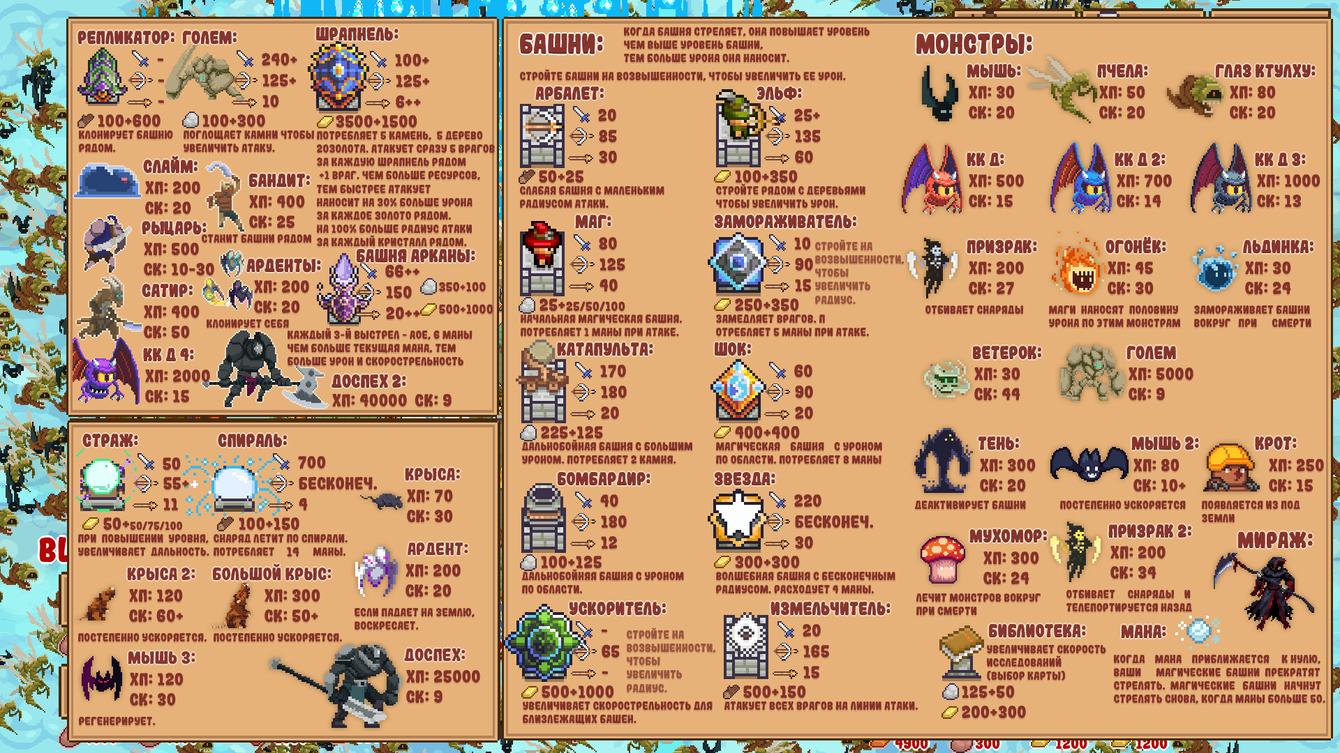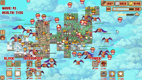 Порядок, в котором выбираются улучшения в каждой игре, очень важен. Вы можете выбрать улучшения на основе ресурсов, улучшения магических башен или улучшения для сильной ранней защиты, что позволит вам безопасно перейти в позднюю игру. В сочетании со случайно сгенерированными блоками это дает бесконечную реиграбельность.