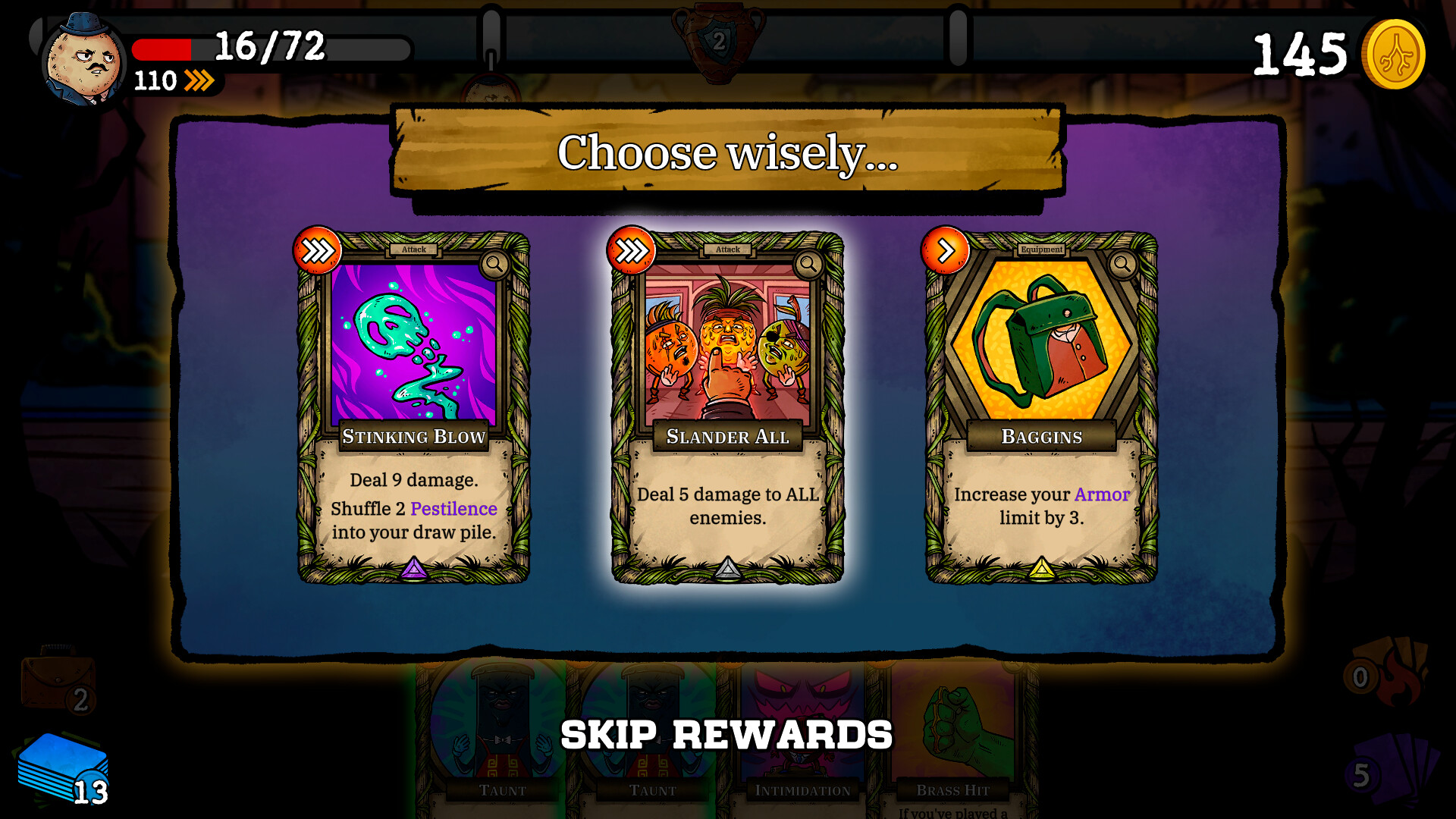 У вас будут разные карты для создания колоды в зависимости от выбранного персонажа! Каждый раз, когда вы выигрываете битву, вы будете вознаграждены выбором карты из трех.