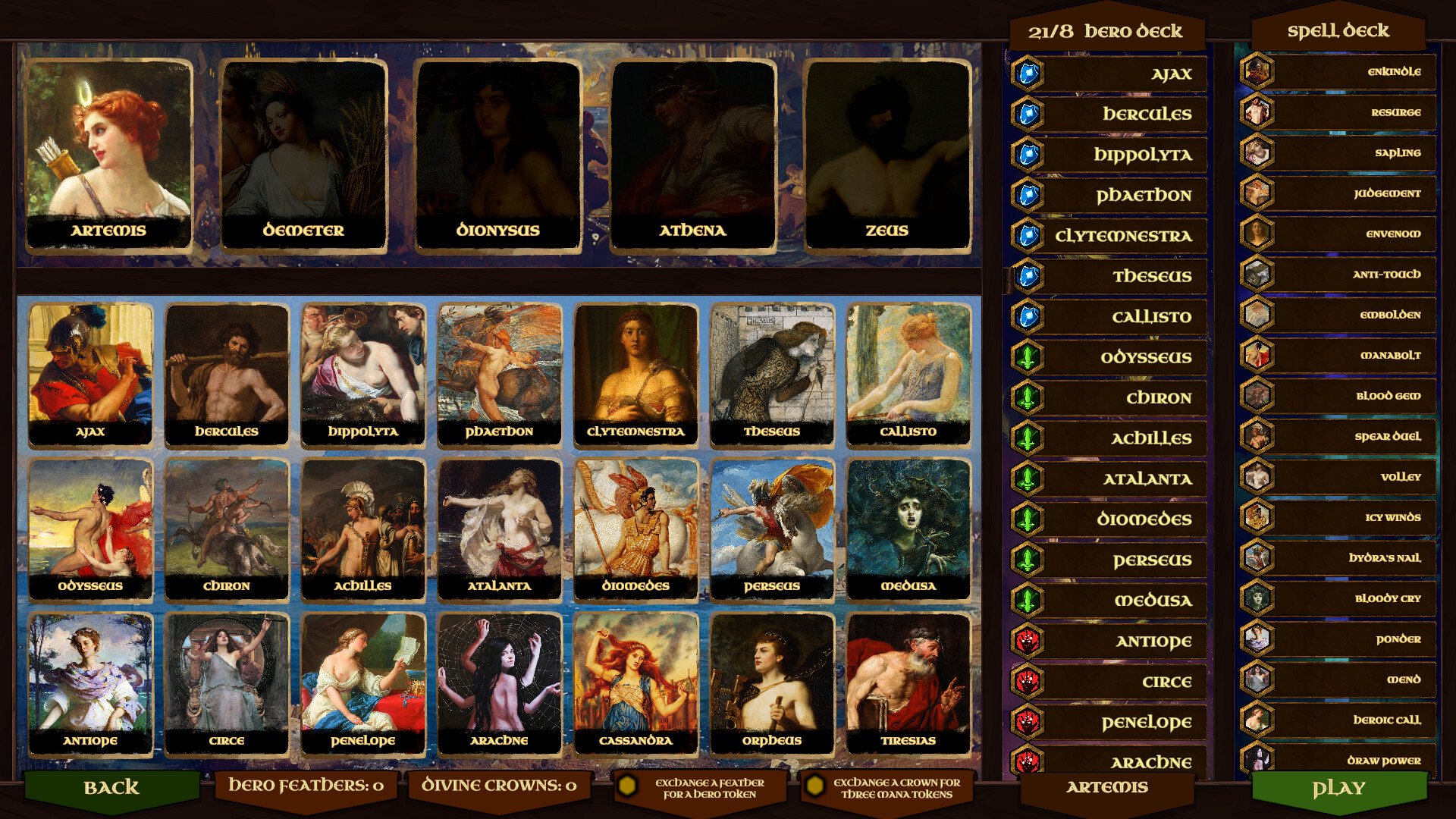 Build a deck of heroes from Greek mythology