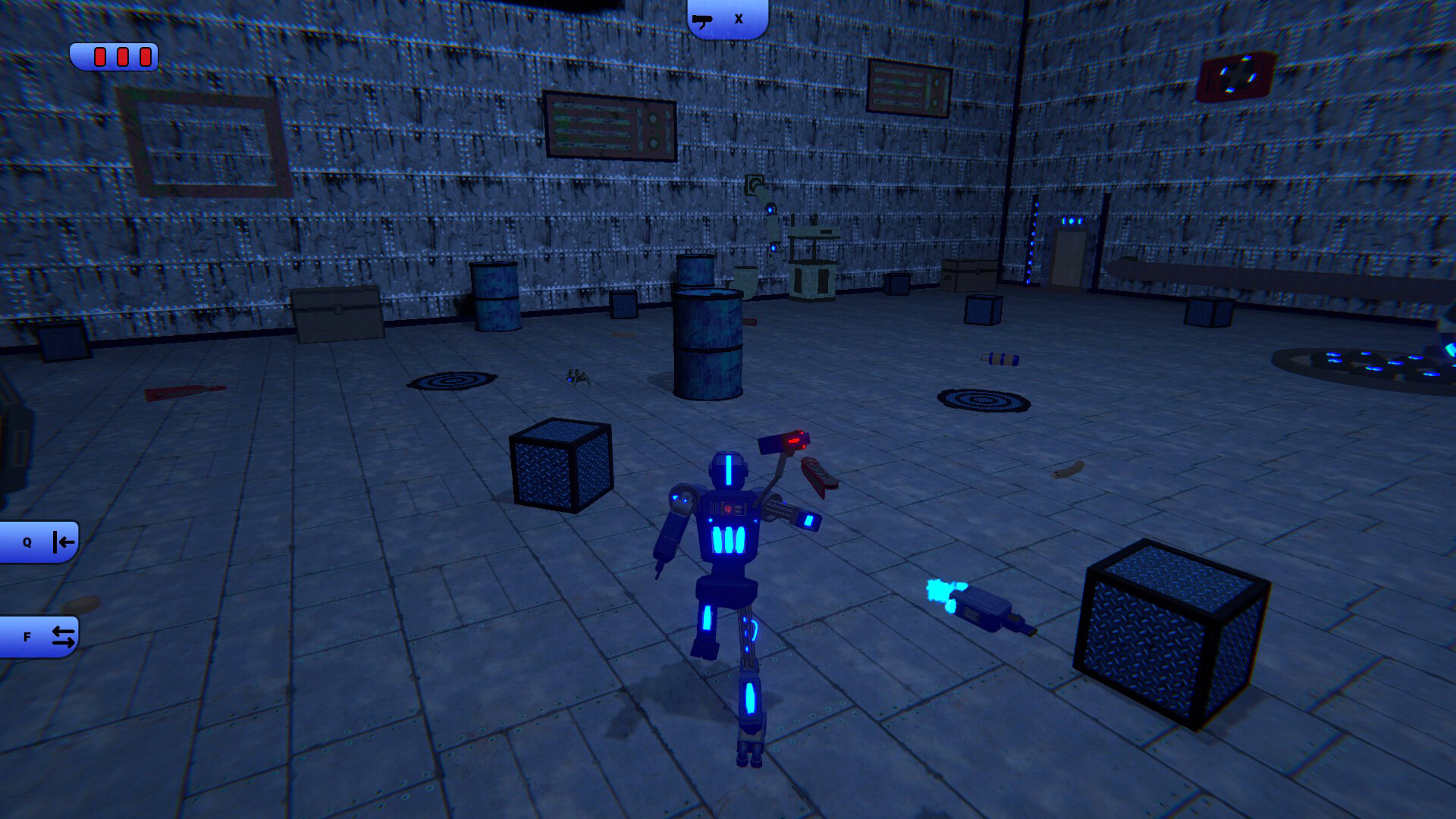 В игре вам предстоит драться с некоторыми роботами. Для этого у вас имеется оружие, которое имеет задержку после каждого выстрела.
