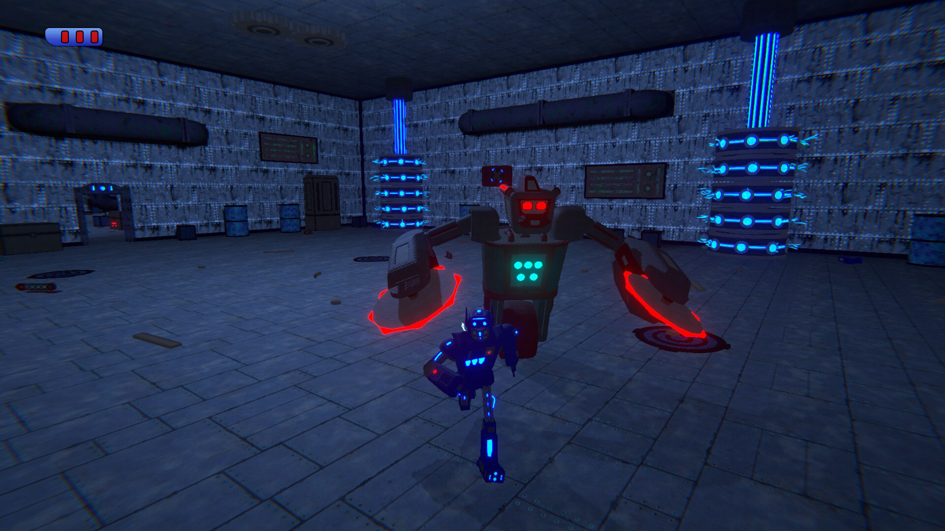 В начале игры дрон подключает к роботу недостающую деталь и оживляет его. Из-за того, что робот сломан, у него происходит утечка энергии. Вы должны подобрать деталь для летающей руки и с помощью нее как можно скорее добраться до детали, которая остановит утечку.