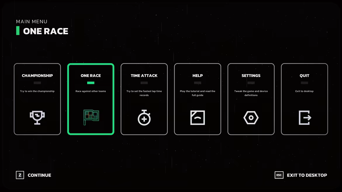 Режимы: Одиночная гонка, Чемпионаты и Время с записью кругов