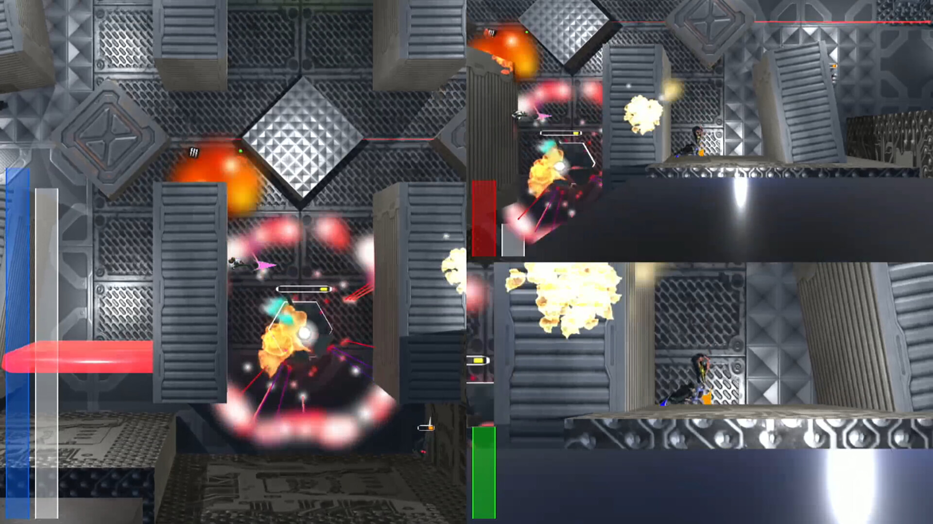 - Or fight against robot AI enemies in single player or split screen co-op (up to four players).