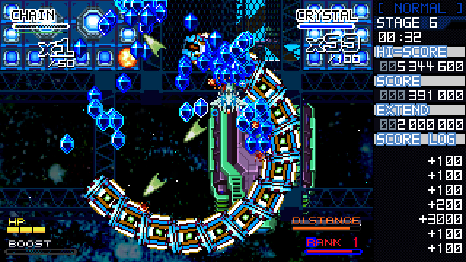 Shoot the enemy at close range! Crystal Breaker is a vertically scrolling shmup that focuses on close range attack.