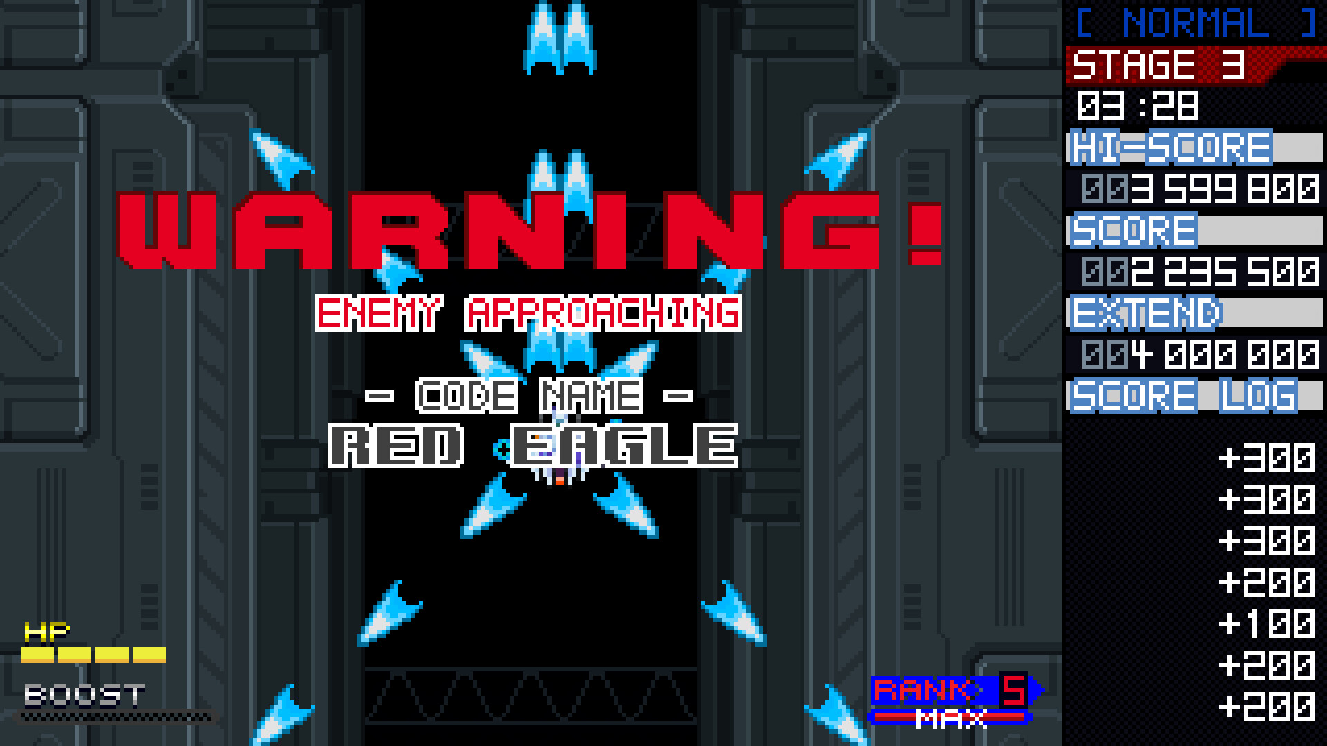 This game is an aggressive shmup where close range attacks and quick destruction are important for both stage clear and score attacks.