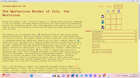 In A Million Murder Mysteries players find themselves in the role of a seasoned detective tasked with solving a diverse range of cases, each with its own unique narrative and set of challenges. The catch? The clock is ticking, and you must sift through a vast sea of text to piece together clues, interrogate suspects, and ultimately identify the perpetrator before it's too late.