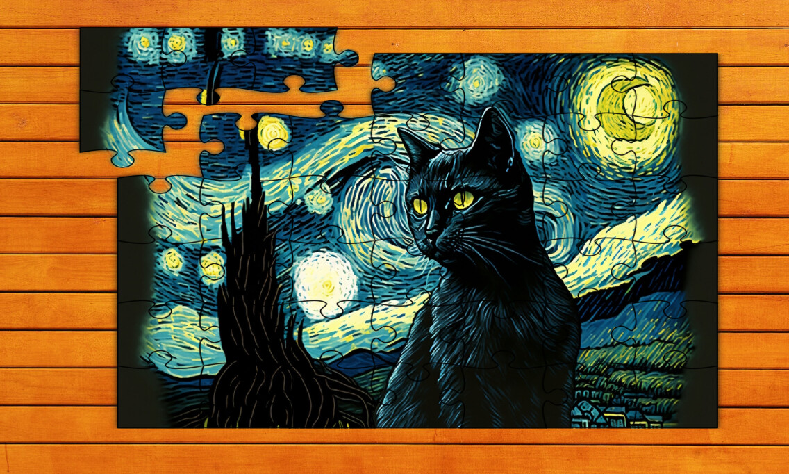 Step into the studio of Vincent van Gogh. Each puzzle presents a canvas of swirling skies, vivid sunflowers, rustic paths, or golden wheat fields—waiting to be pieced together. Begin with fewer pieces and gradually work your way to more complex arrangements, revealing layer by layer the depth and texture of Van Gogh’s style.
