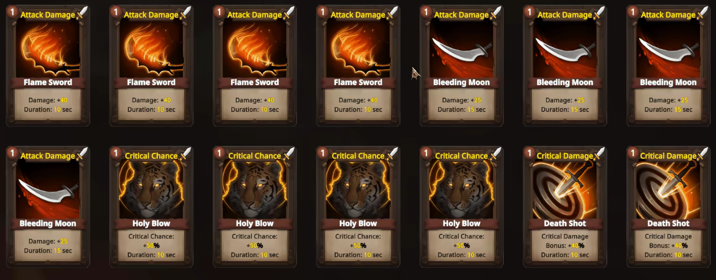 В этой стратегической игре проверьте свои навыки в умном использовании карт и разработке эффективной стратегии, чтобы выжить на каждом уровне. Карты бывают пяти разных типов: Атака, Защита, Здоровье, Усиление и Скорость, каждая из которых предлагает уникальные стратегические преимущества. Побеждайте волны врагов, собирайте карты, ценное снаряжение и золото, чтобы развивать своего персонажа. Укрепляйте свои карты, формируйте свою судьбу, выдерживая тонкую грань между удачей и стратегией, и станьте легендарным воином!