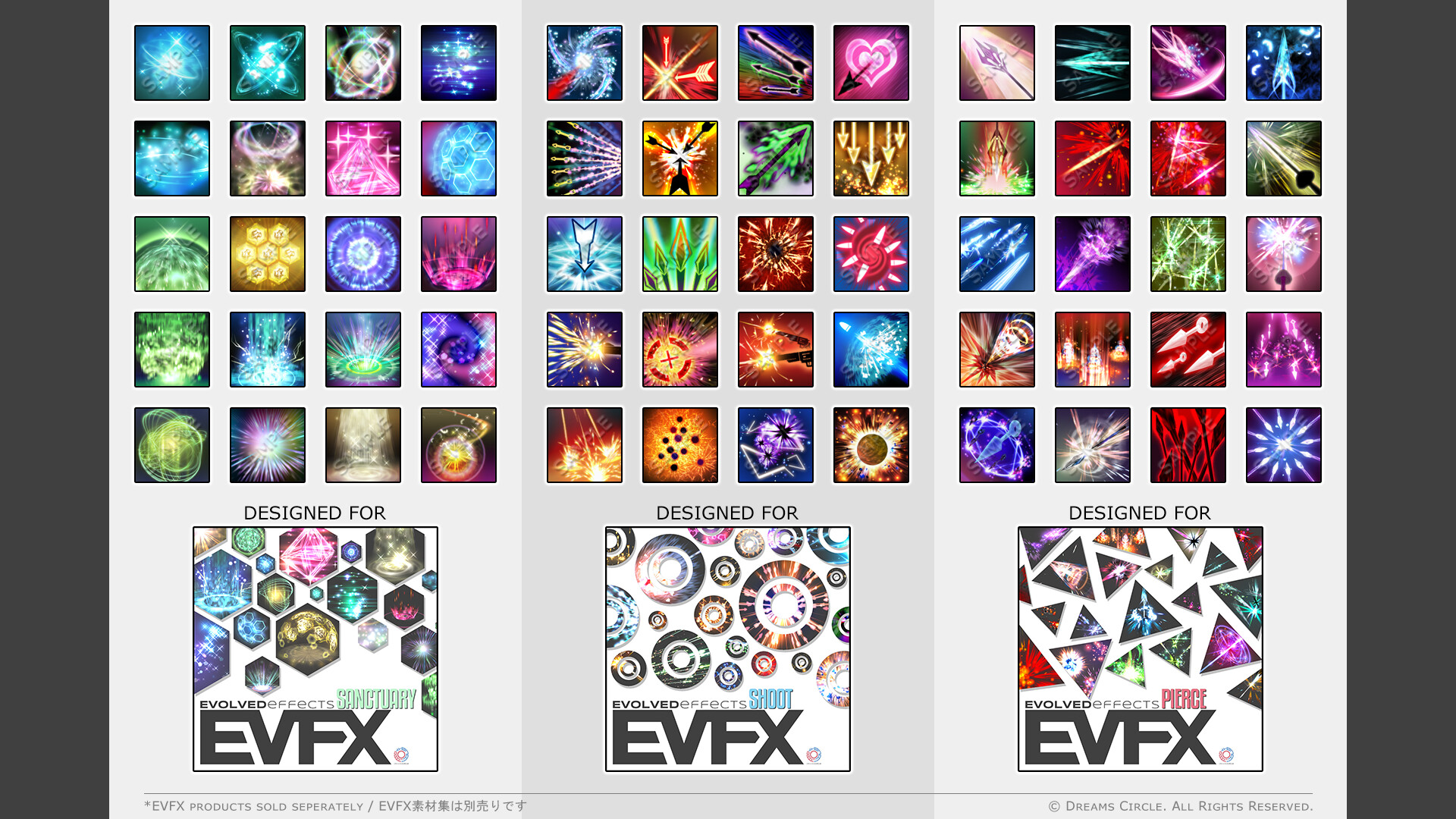 Designed by Dreams Circle, a team specializing in high-quality game assets, "Iconography 1" features 60 hand-crafted icons designed for the EVFX series of VFX assets, as well as 4 new sets of VFX, SFX, and icons.