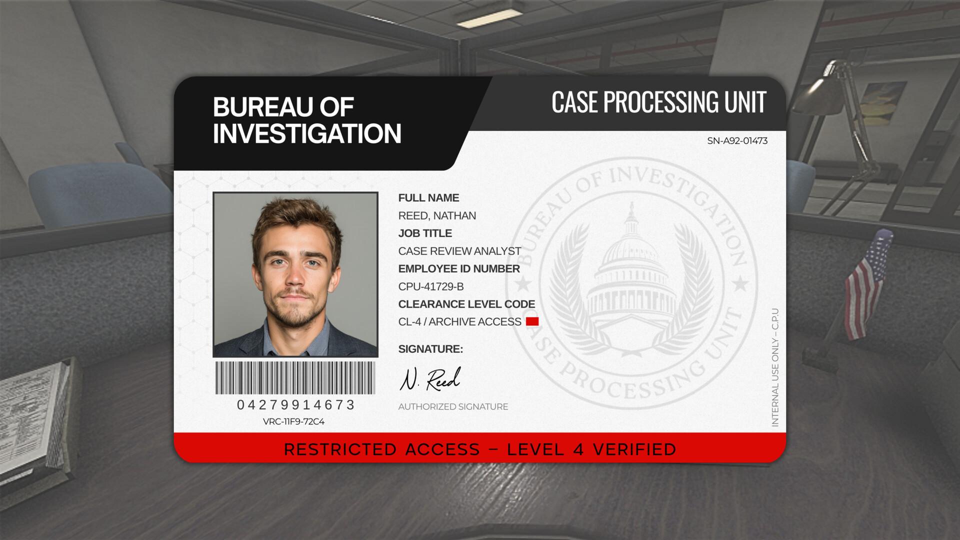 You play as Nathan Reed, Who has been hired to work the night shift at the Bureau of Investigation – Case Processing Unit, tasked with clearing a classified backlog of highly sensitive reports that were never meant to resurface.