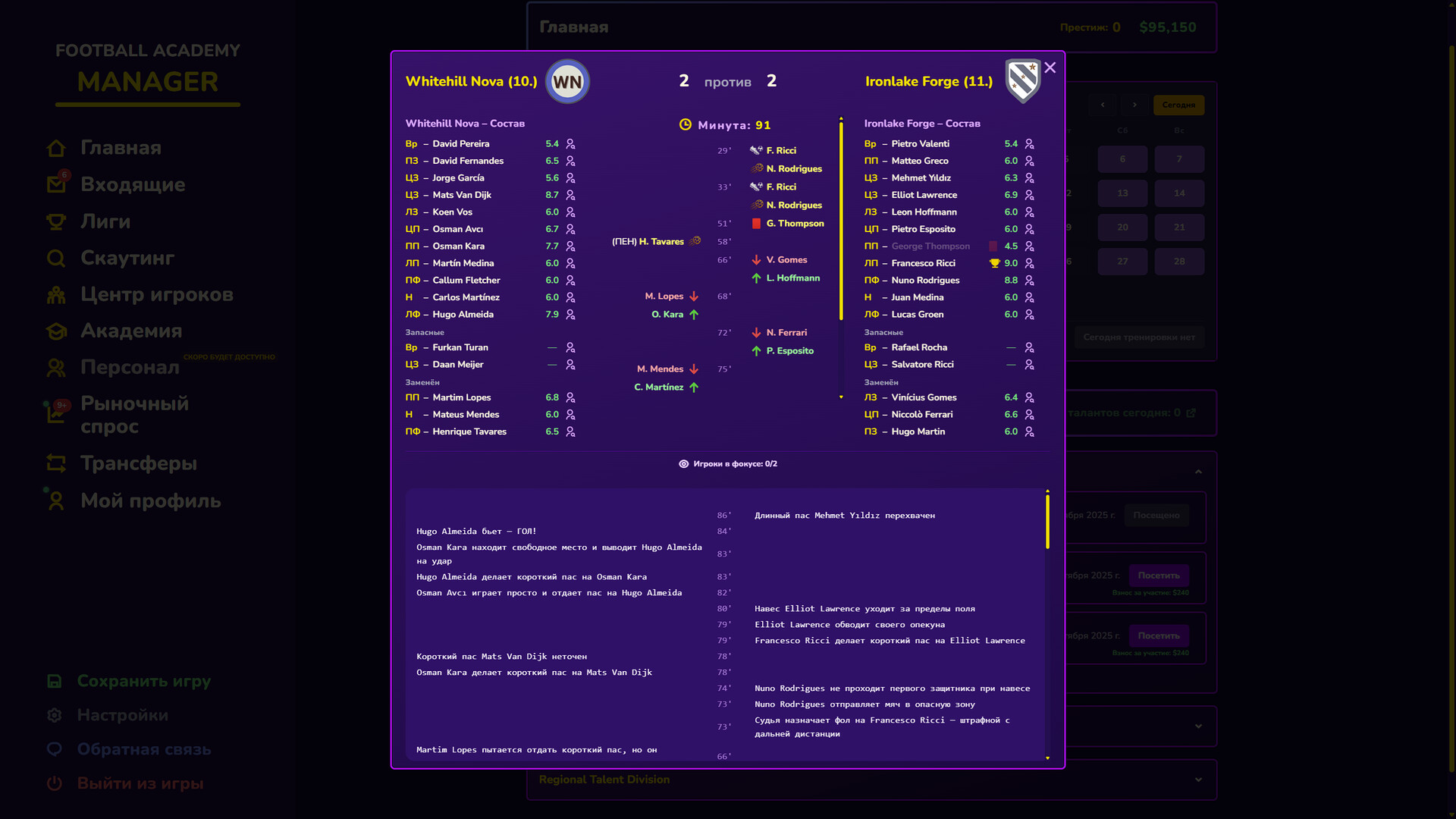 Смотри молодёжные матчи, раскрывай сильные стороны игрока через скаутинг, и подписывай тех, кто подходит твоей академии.