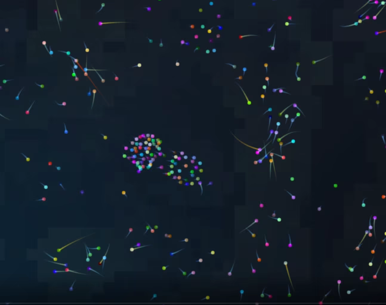 Each particle carries its own genetic parameters that determine how it moves, interacts, and evolves.