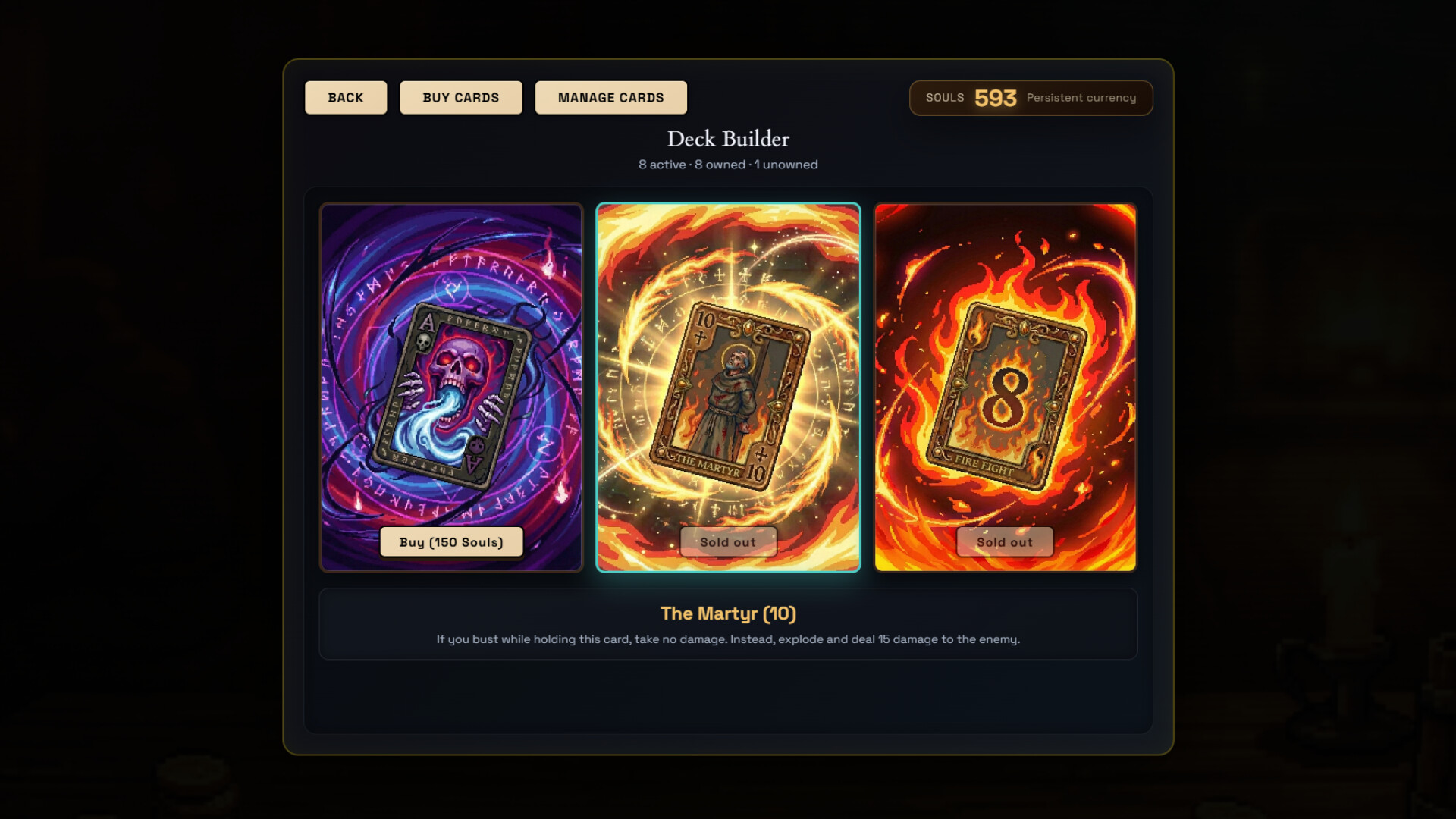 В этой игре ваша колода карт — это ваш меч. Каждый ход — это азартная игра, а каждый враг — новая головоломка. Рискнете ли вы взять карту (Hit), чтобы нанести огромный урон, но с опасностью перебора (Bust), или же остановитесь (Stand) и сыграете наверняка?