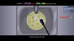 Звенит будильник. Ты просыпаешься — но тебе некуда идти. Это не обычный день в офисе, это борьба за выживание в доме. Тебе нужно управлять своими потребностями, заботиться о физическом и психическом здоровье. Поддерживай уровень дофамина, чтобы не умереть от скуки. Ешь, пей (в меру), ходи в туалет, мойся, избегай обязанностей и находи способы развлечь себя. Просто выживай, иначе все начнется заново.