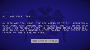 Молодой человек по имени Селим Кара найден мертвым при загадочных обстоятельствах. Когда к его компьютеру подключают камеру, система повреждается, и файлы становятся нечитаемыми. Вы — агент Национального разведывательного центра. Ваше задание простое: восстановить файлы.