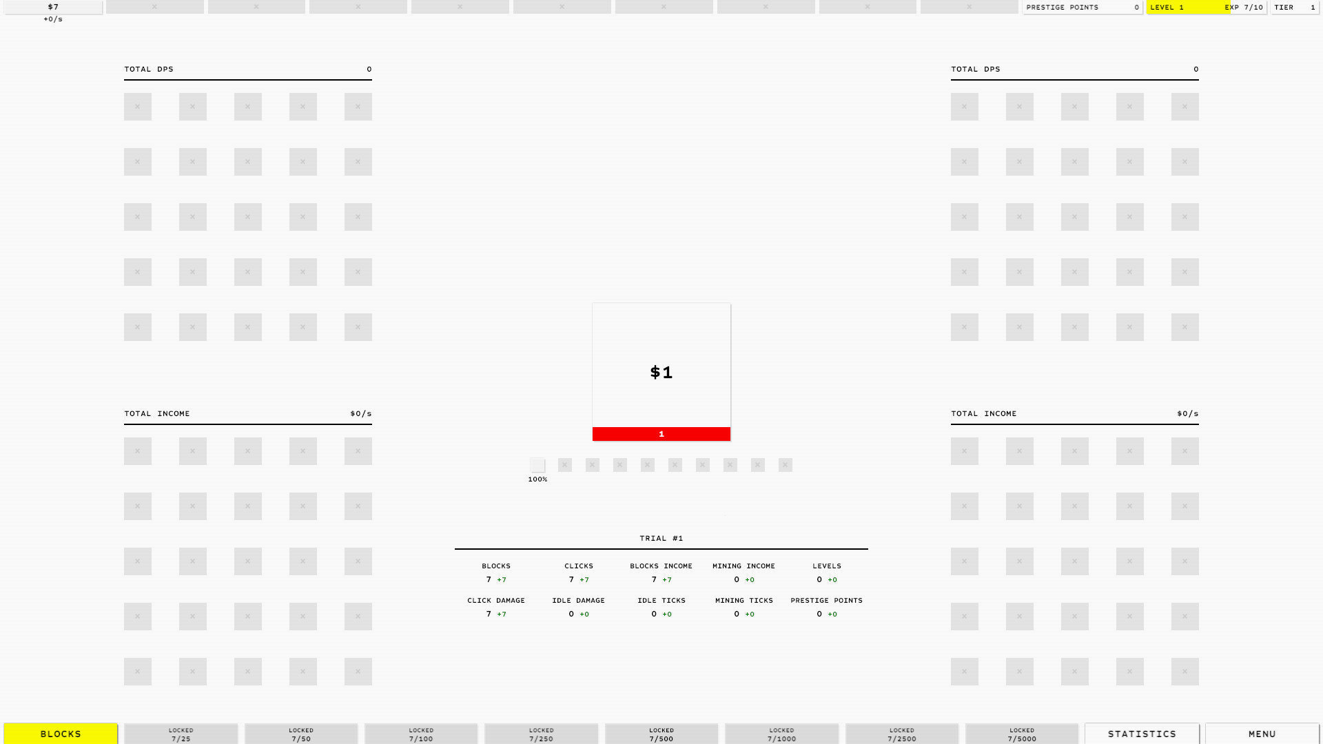 Кликайте или используйте idle урон, чтобы уничтожать блоки. Зарабатывайте деньги самостоятельно или через пассивные генераторы.
