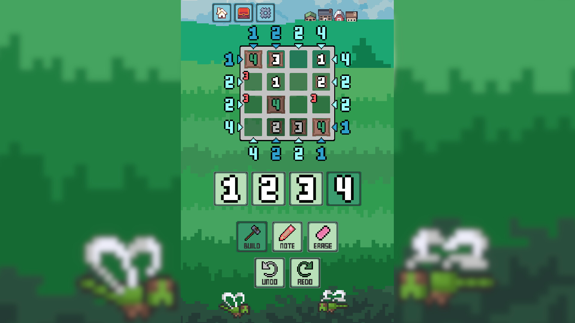 Cityscapes features an endless series of number-placement skyscrapers puzzles in which you place buildings of different heights in a city to satisfy all of the residents' wishes.