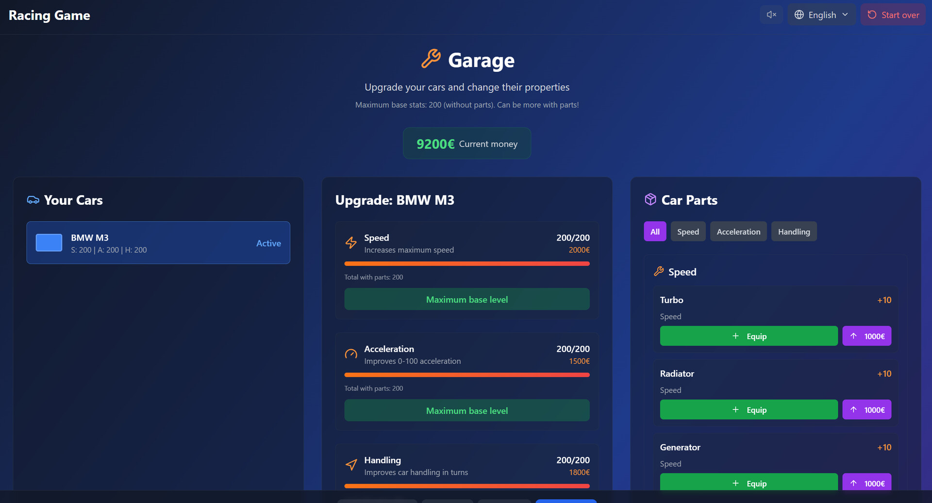 Players choose from multiple cars with different speed, acceleration, and handling characteristics, and compete in races against AI opponents. Each race offers rewards that can be used to unlock new vehicles and upgrades.