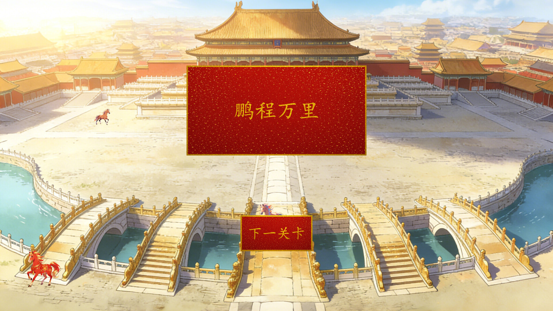 Gameplay is simple—all you need is your mouse. Each level features a magnificent historical site. All you need to do is find the horse you think is most likely the thousand-mile horse in the historical site, then click on it. If you're correct, you'll advance to the next level and discover a brand-new destination. If you make a mistake, no worries—just try again. The game encompasses nearly all of China's famous historical sites, with each location artistically rendered to showcase its most iconic scenery. We've designed hundreds of horses featuring Spring Festival elements. We've also created an original soundtrack blending traditional Chinese music, performed with both traditional Chinese instruments and modern Western instruments. This allows you to better understand Chinese history and culture while searching for the thousand-mile horse.