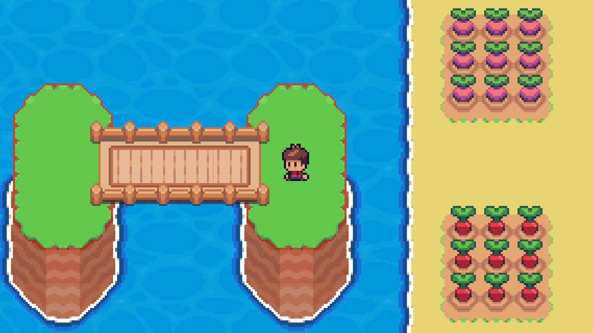 Custom characters, custom maps, planting, raising livestock, chopping trees, weeding, fishing, building houses, constructing bridges, mining, driving away enemies who steal crops, and so on. You can skip tasks if you don't want to do them, and running out of stamina won't cause any loss.