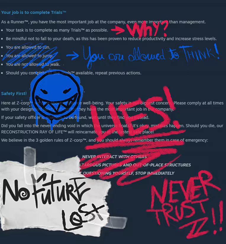 Z-CORP RECRUITING! Job Title: Runner / Duration: Indefinite. Skills Needed: Good Parkour abilities, strong stamina, complete obedience to authority. To apply for this application, please install the game first. - Z