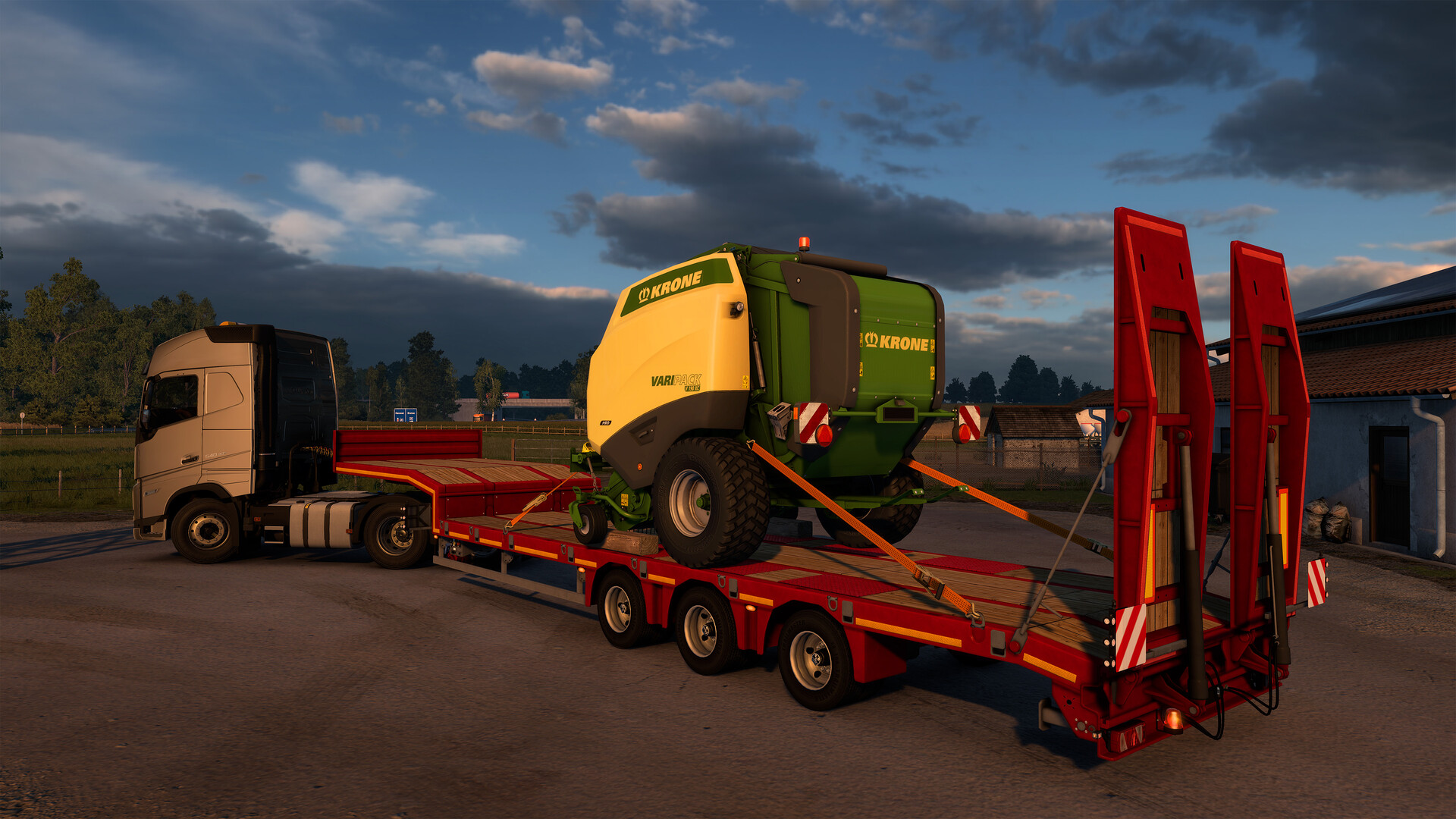 Introducing the Krone Agriculture Equipment! Expand your hauling experience in Euro Truck Simulator 2 with this DLC. The Krone Agriculture Equipment adds a fresh variety of cargo types, featuring cutting-edge machinery from Krone – a globally recognized leader in agricultural equipment.