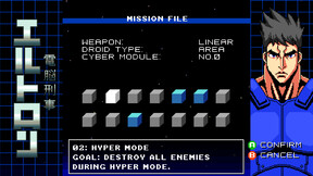 Blast through 5 stages full of robot enemies, using cyber modules, support units and a full arsenal of devastating weapons.