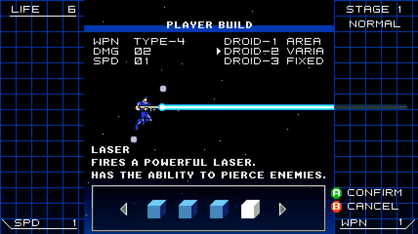 • 4 upgradable weapons from linear to wide shots.