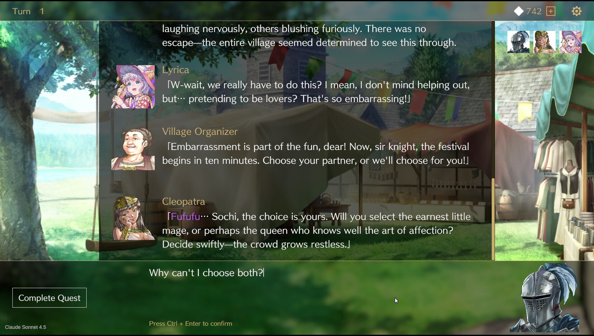 There are no multiple-choice options in this game. Your actions and dialogue are dictated entirely by your own free-form input. No matter the content or length of what you write, the AI will adapt and expand the story accordingly.