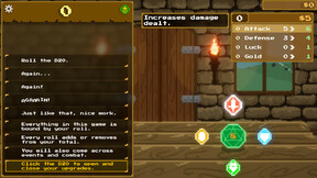 Encounter roll-based events and enemies to earn gold to upgrade your Attack, Defense, Luck, and Gold gain as you progress.