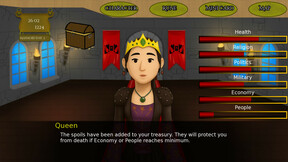 As their characters enter the throne room, they must make challenging decisions affecting various factors, including politics, military, economy, health, religion, and the people. The choices they make determine the fate of the kingdom, and the consequences of each choice can be profound. For example, if the economy declines significantly, the country can become impoverished and face the threat of a coup.