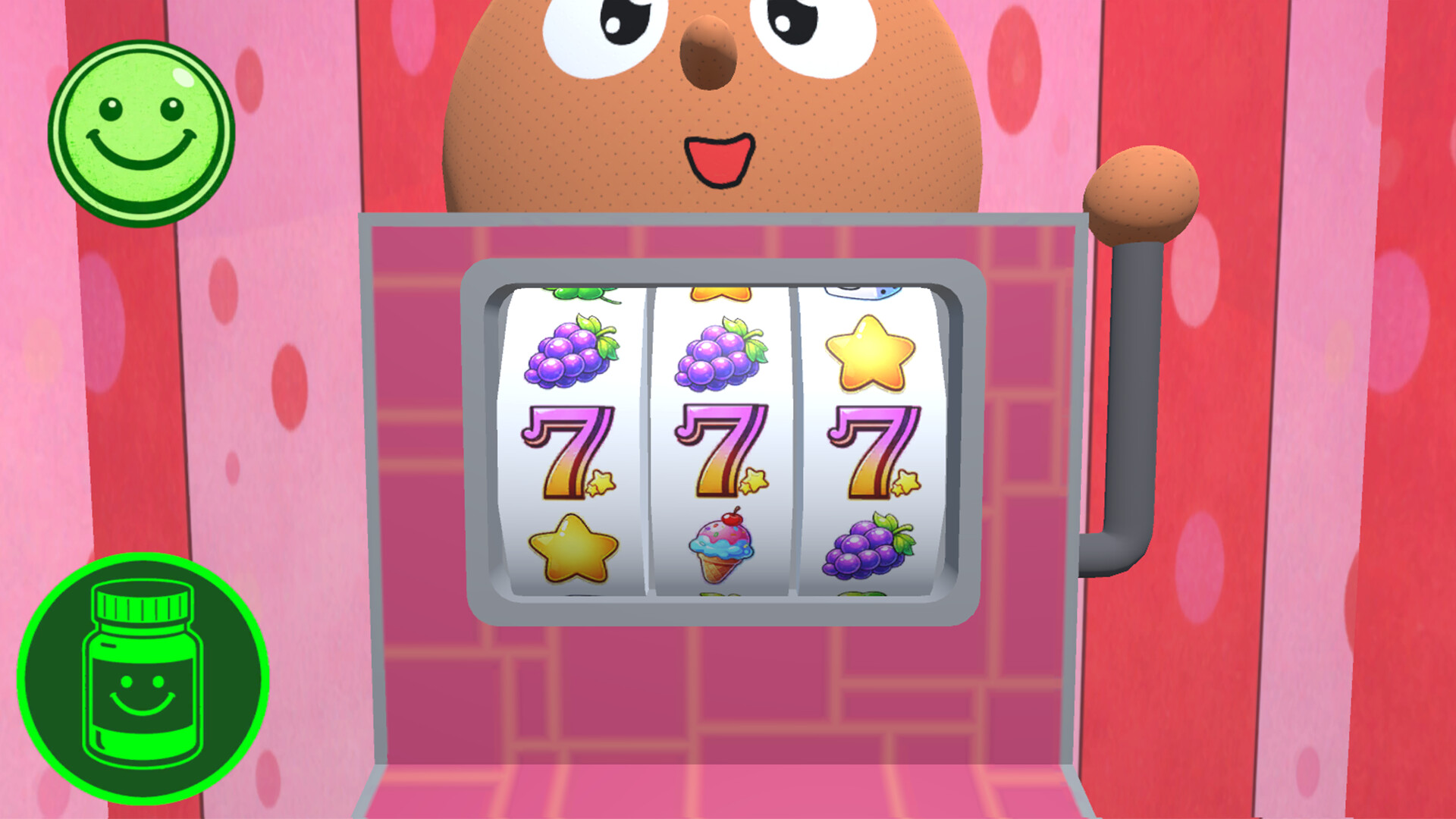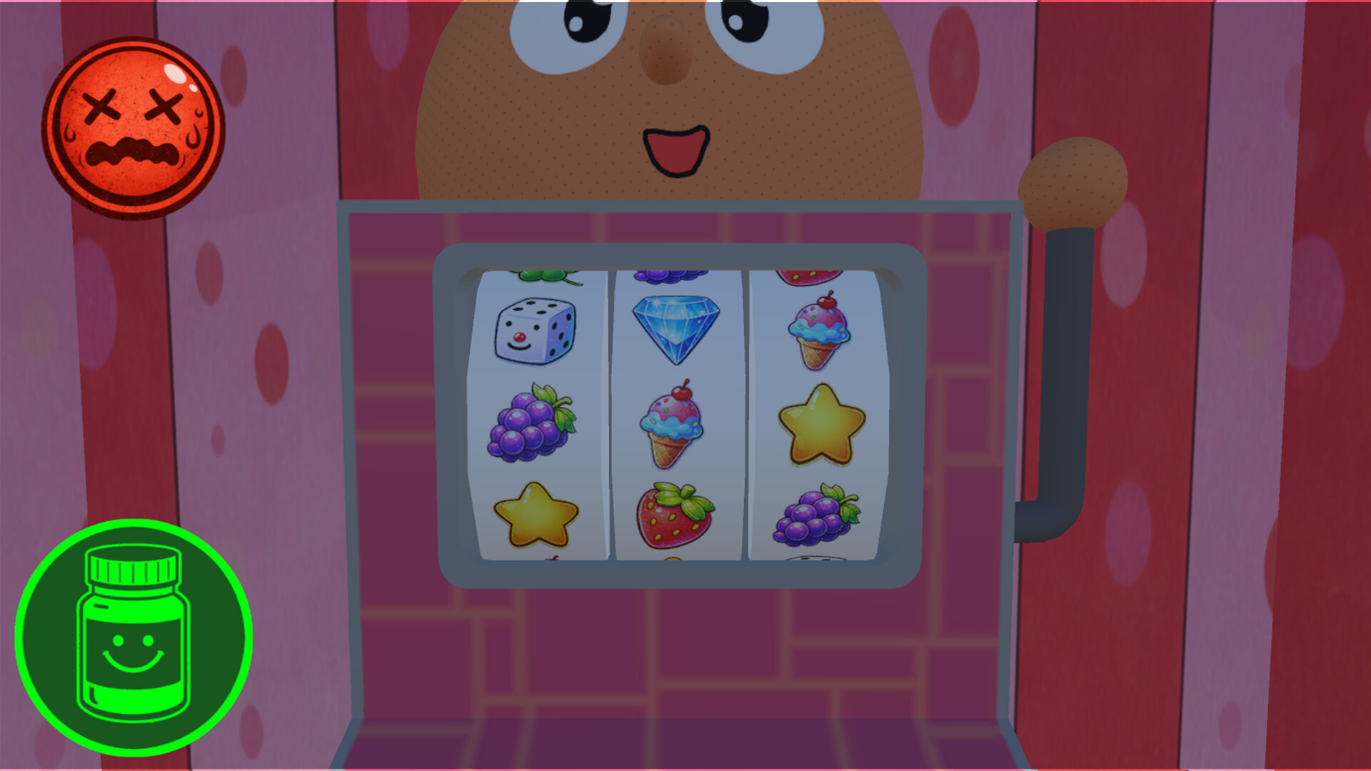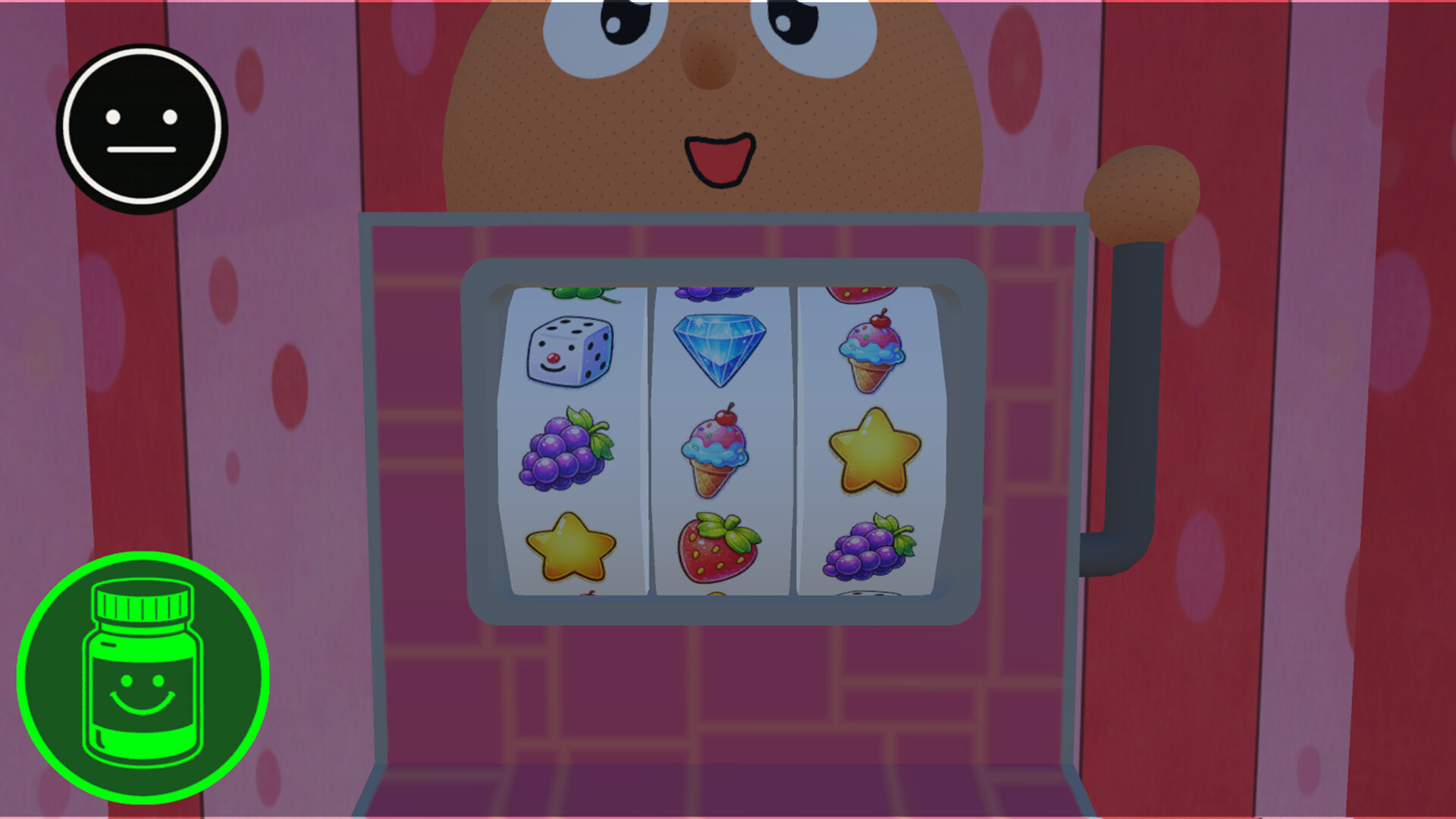 A short psychological horror game where you continually choose whether to keep spinning the slot machine or quit. The controls are simple, but each spin changes the visuals and feel, with your choices branching the experience and ending.