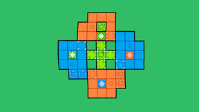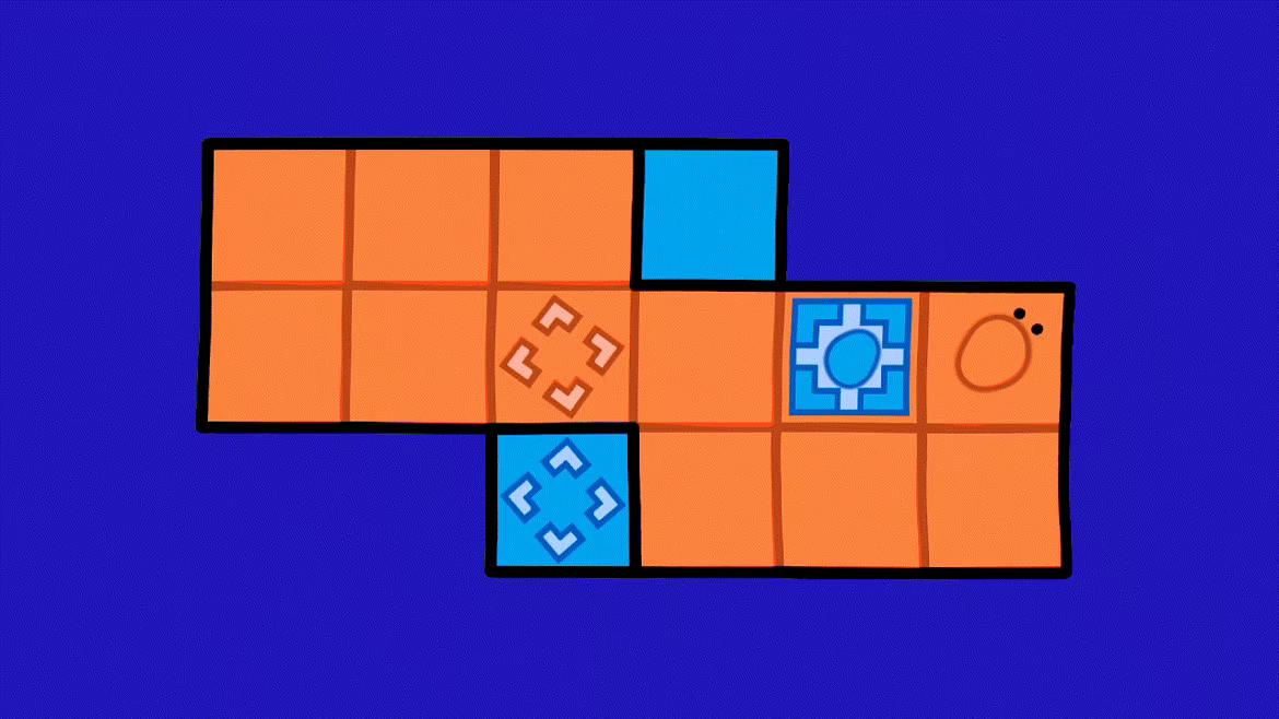 Without crossing colors, move the blob characters around the field. By pushing boxes, have the blobs interact and together help them reach their goals.