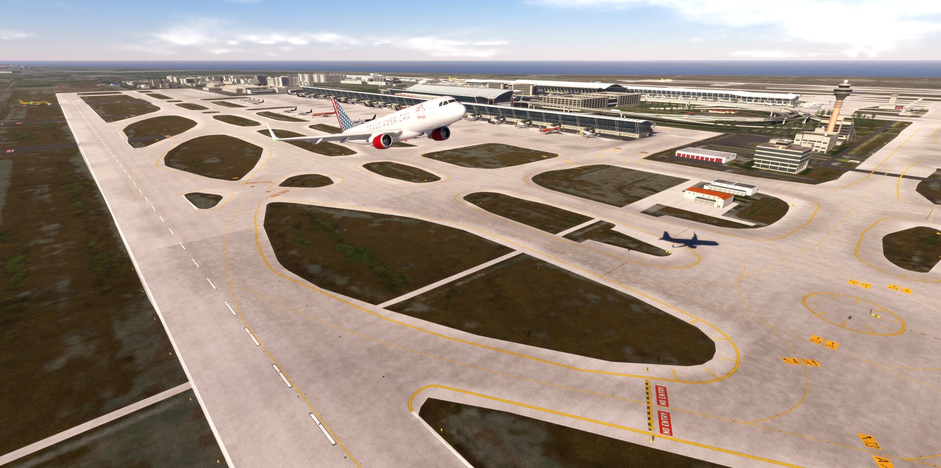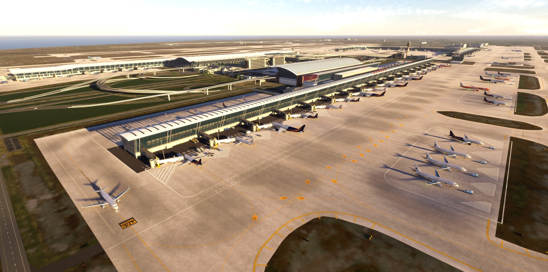 Detailed Airport Layout – Accurately modeled terminals, taxiways, cargo areas, and runway configurations.