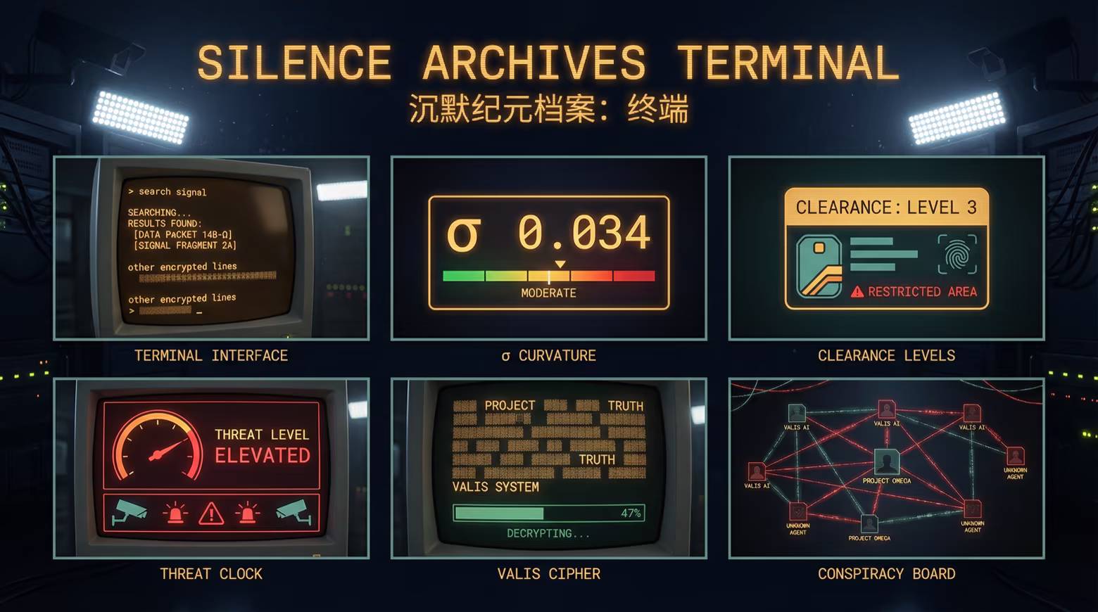 Silence Archives Terminal is a companion experience to The Silence Protocol trilogy. The 120 archives contain fragments of a larger story — but the terminal stands alone as a complete investigation.