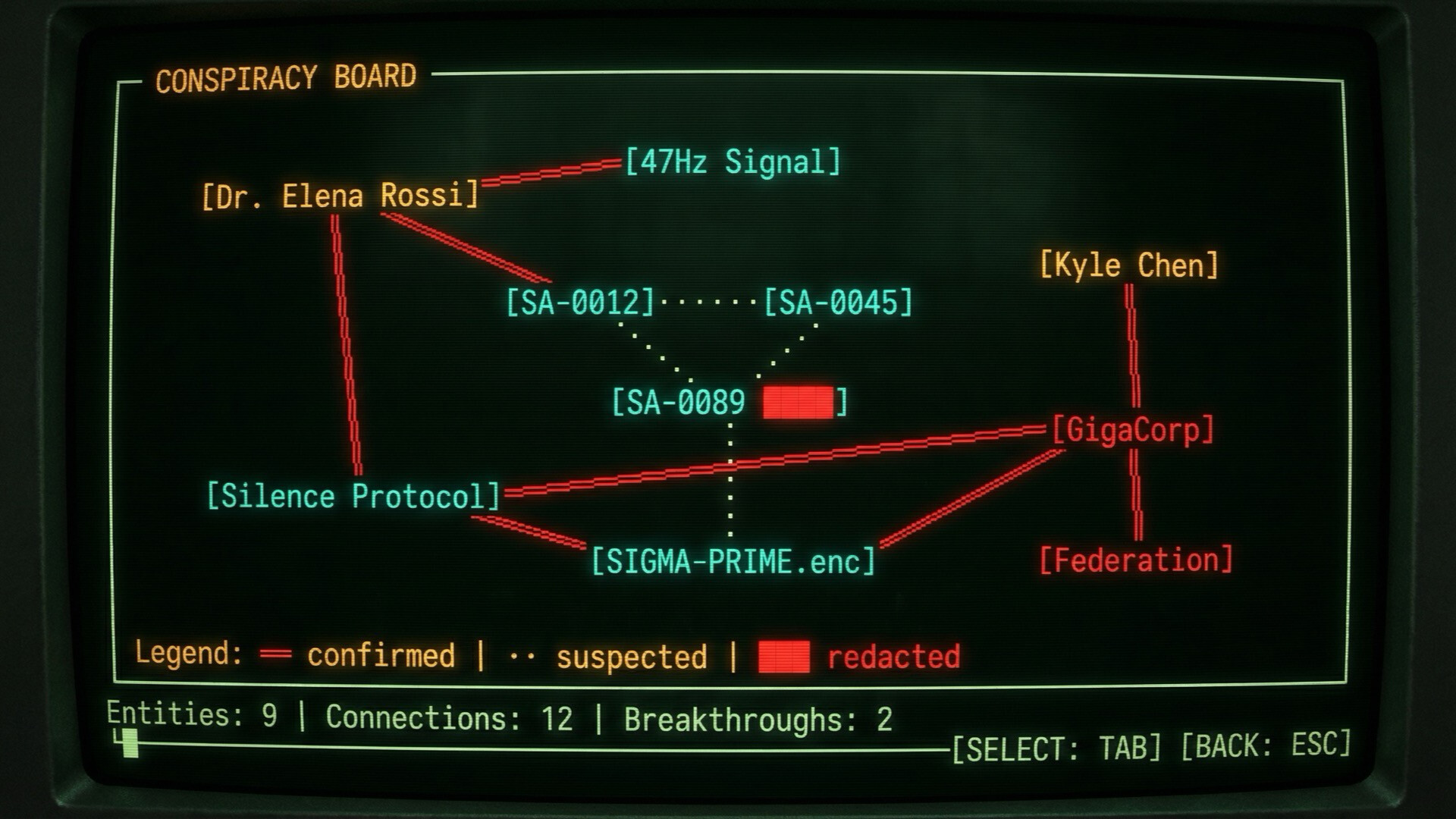 Hack into a classified archive of 120 intercepted documents. In this retro terminal investigation, every file you read alters reality — your observations are irreversible, the Federation is watching, and three divergent endings await based on how deep you dare to dig.