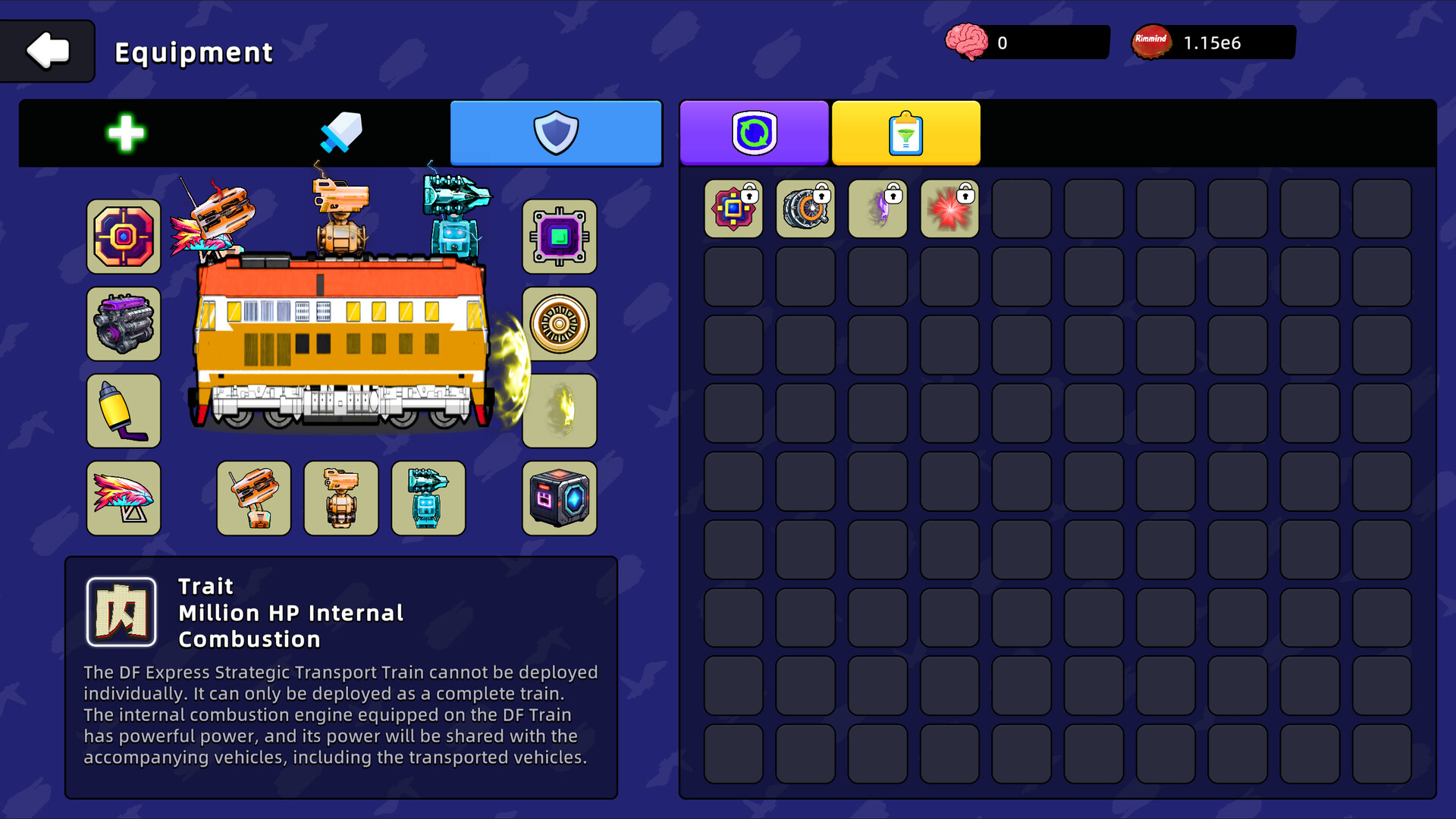 You can transport one war vehicle to the battlefield. For each empty slot in the inventory, the drop rate increases by 1%. For each item, the drop rate decreases by 0.5% and the team's attack increases by 100%.