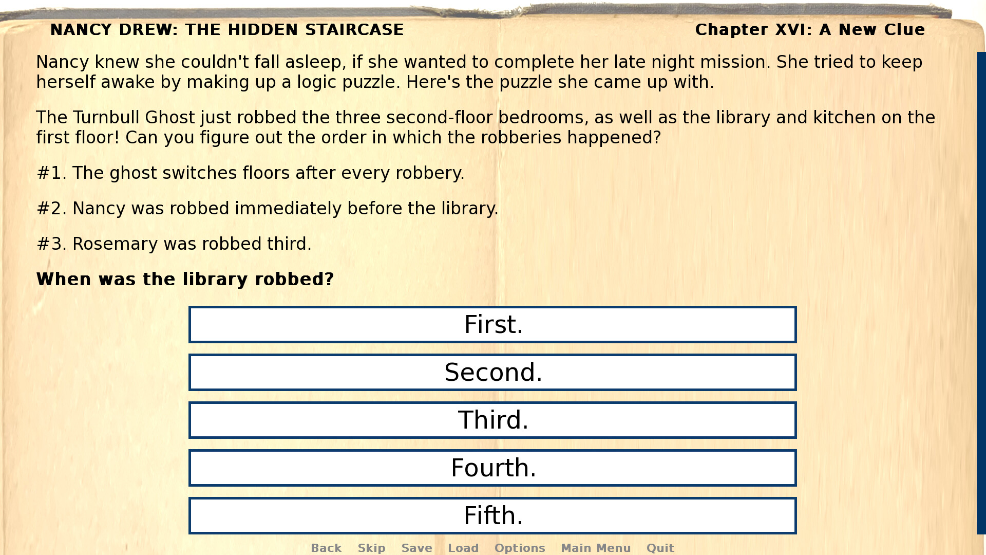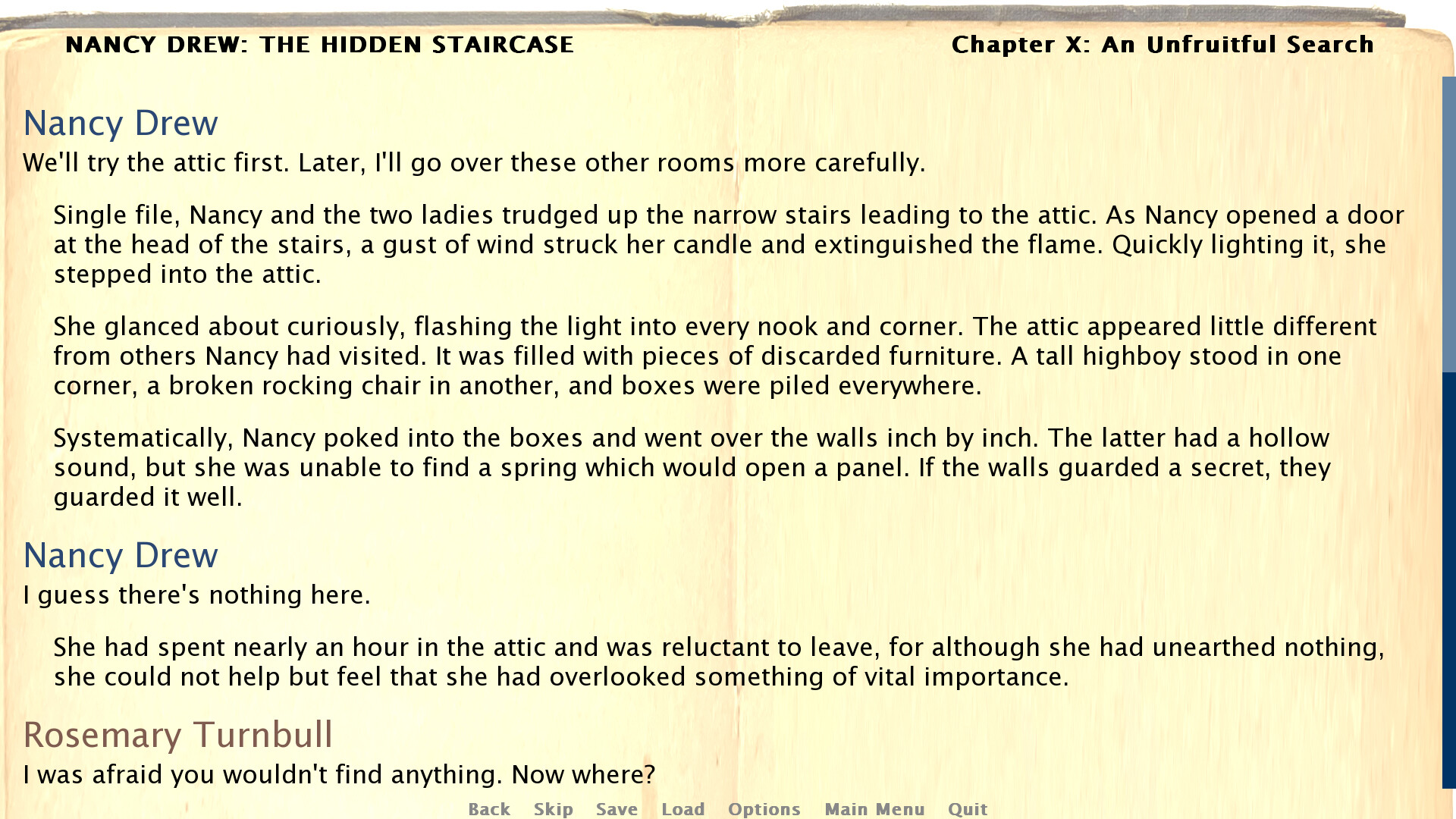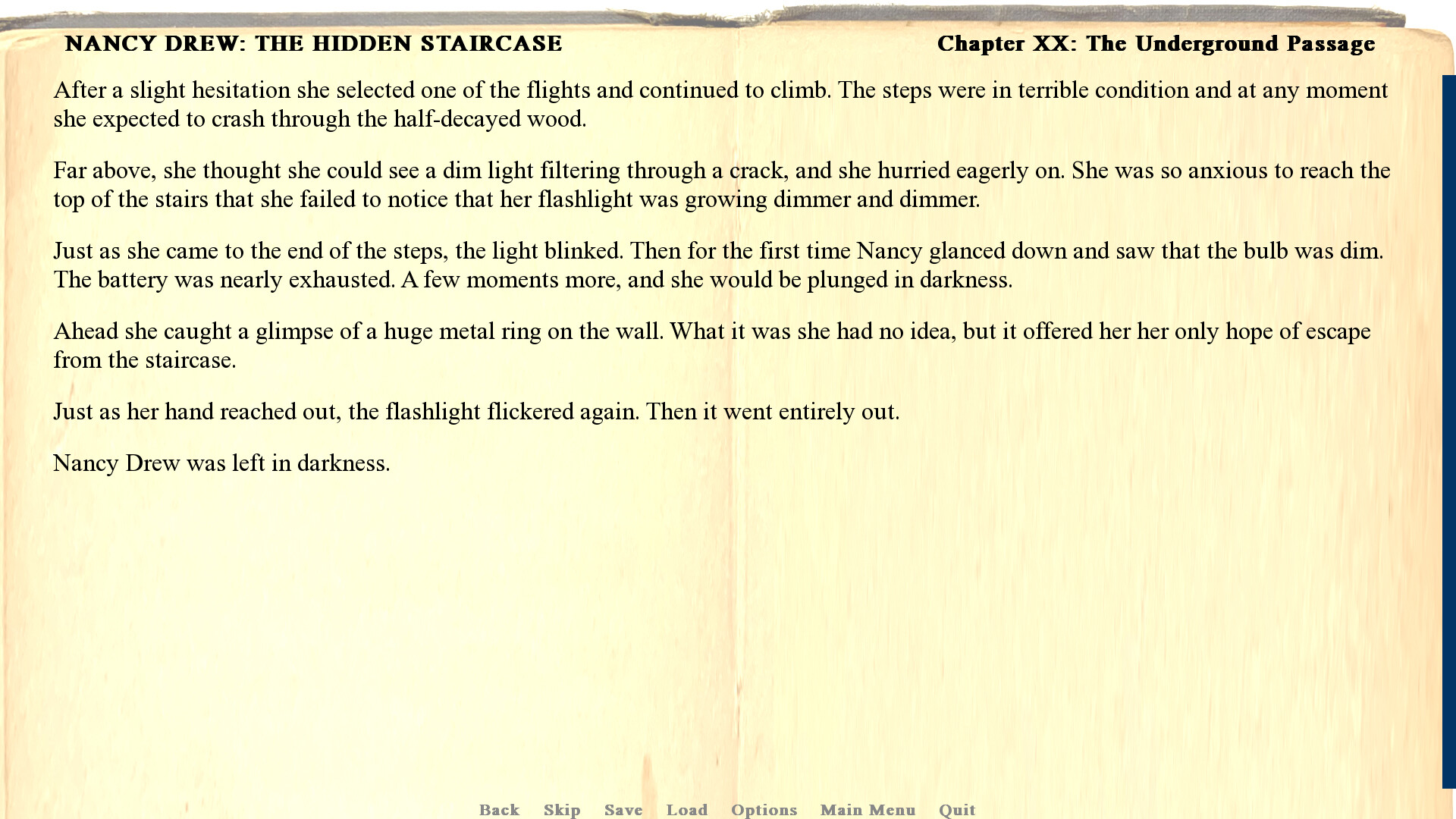 This game is based on the 1930 public domain edition of The Hidden Staircase. It is an independent adaptation and is not affiliated with or endorsed by Simon and Schuster, Her Interactive or any other current rights holders of Nancy Drew.