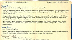 Play as Nancy Drew and solve the mystery, in this interactive novel set in the year 1930. It's entirely text-based, with no graphics to distract you—just the story, your choices, and the mystery. Solve this exciting case today!