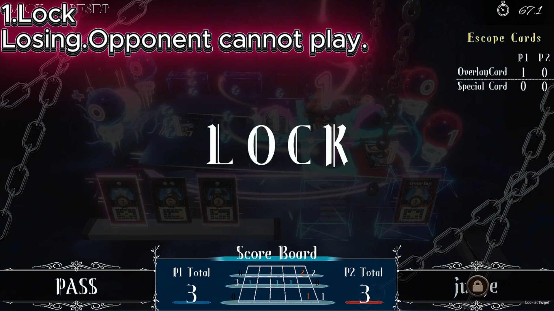 Tactical card battles on a compact 3×5 grid. Deploy cards, channel souls, and expand your territory. Cut the flow and the chains of Lock will emerge. Break through defenses, seal their options, and force a Checkmate.