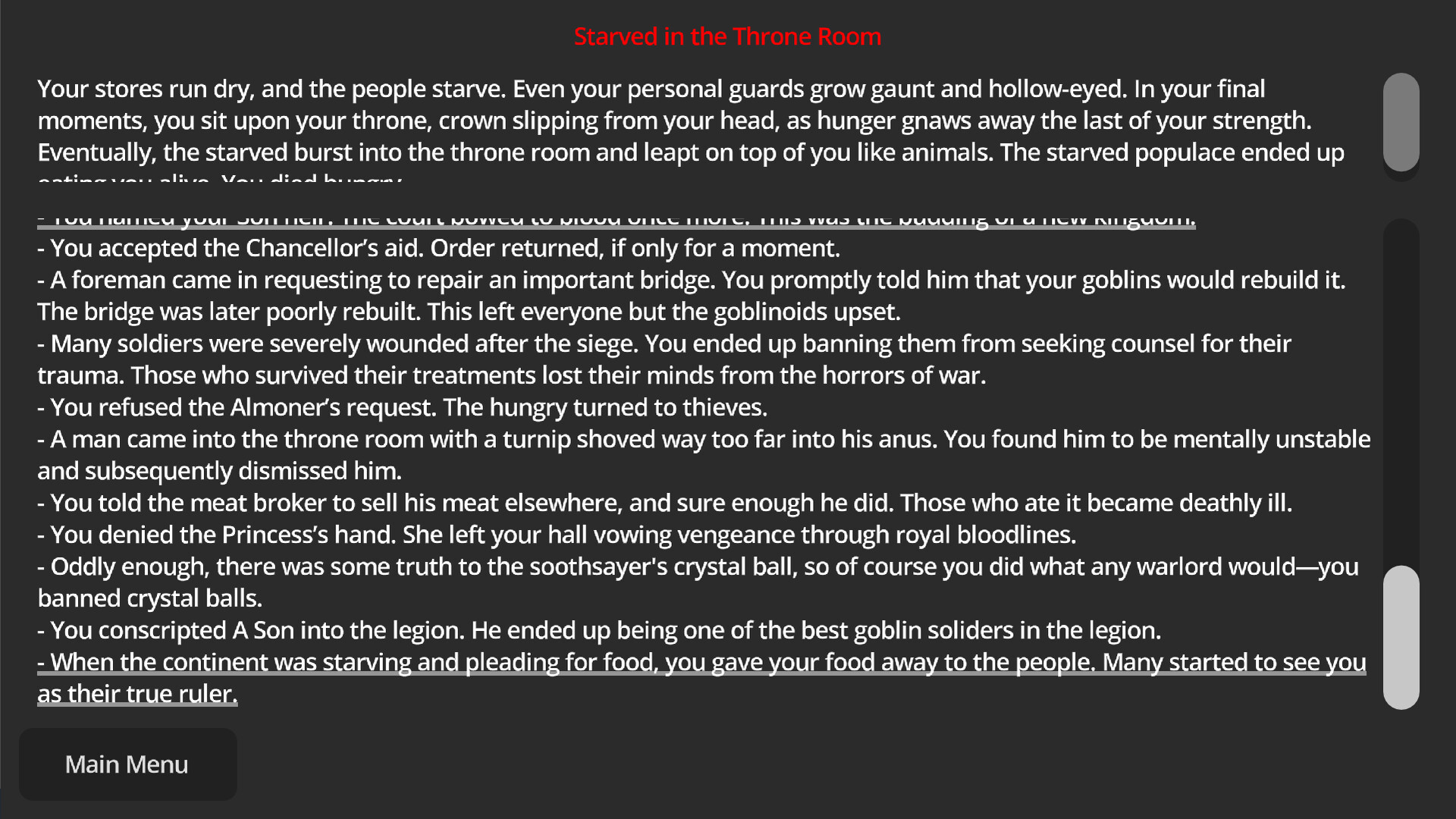 В этом RPG об управлении королевством вы играете за хобгоблина‑военачальника, покорившего гибнущее королевство. Теперь, сидя на троне, вам предстоит провести свою легион через 100 событий тронного зала, балансировать скудные ресурсы, выживать в борьбе за власть и принимать мрачные решения, которые сформируют ваше наследие.