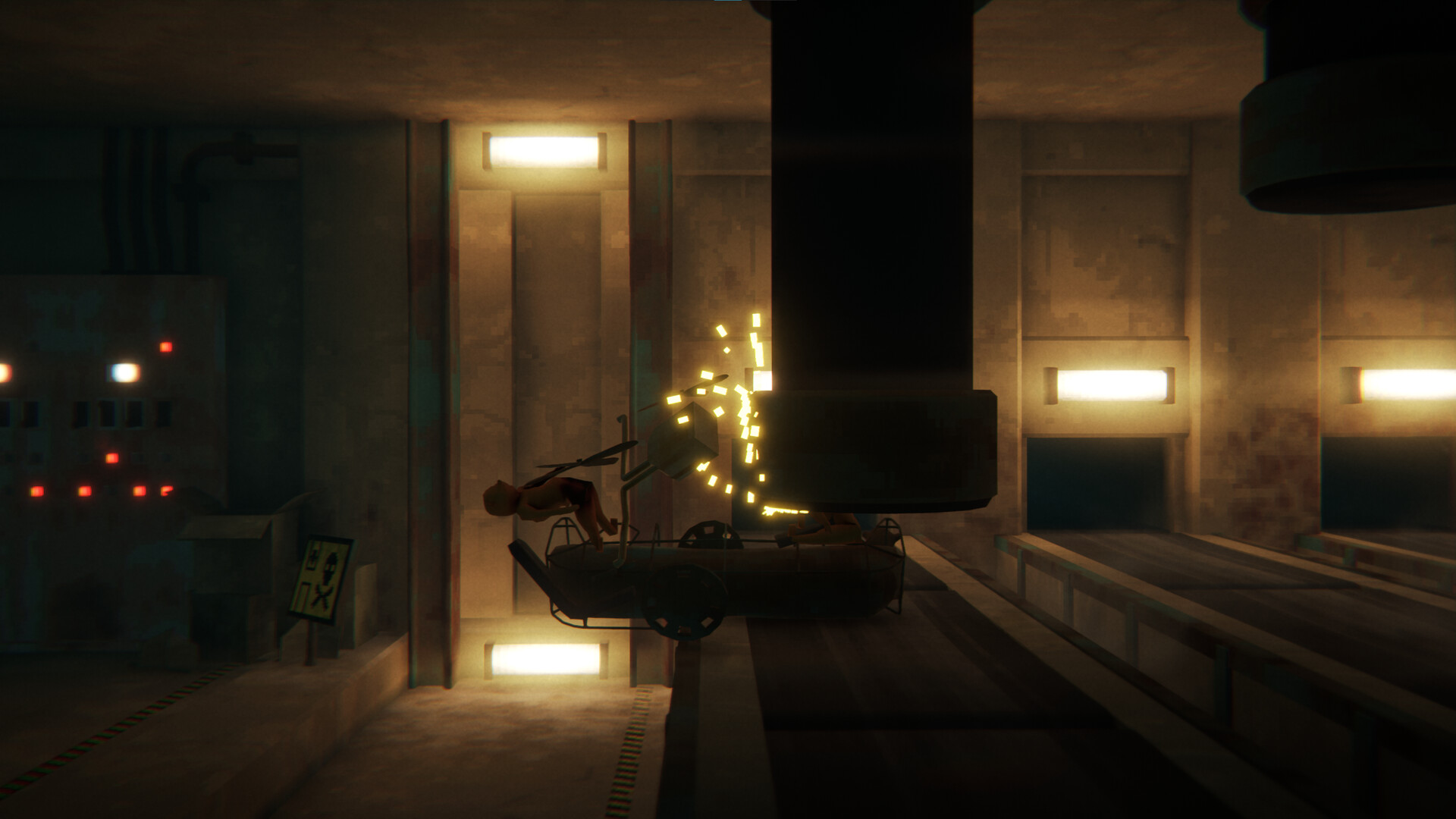Летайте по заброшенной фабрике. Преодолевайте препятствия и решайте головоломки, стараясь не попасть под пресс.