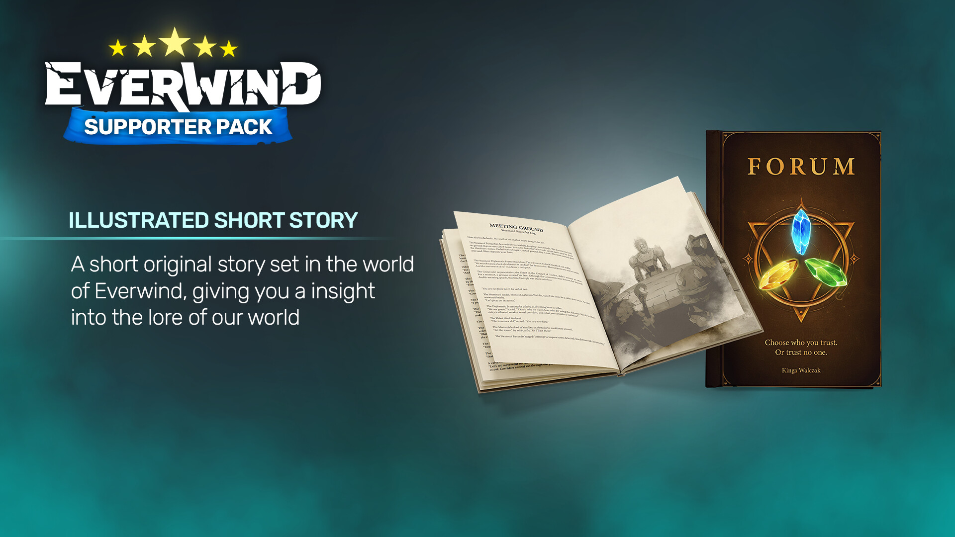 Это набор для тех, кто хочет поддержать разработчиков игры Everwind. В нём вы найдёте оригинальный саундтрек, эксклюзивные обои и проиллюстрированный рассказ в формате PDF — в знак благодарности за вашу помощь.